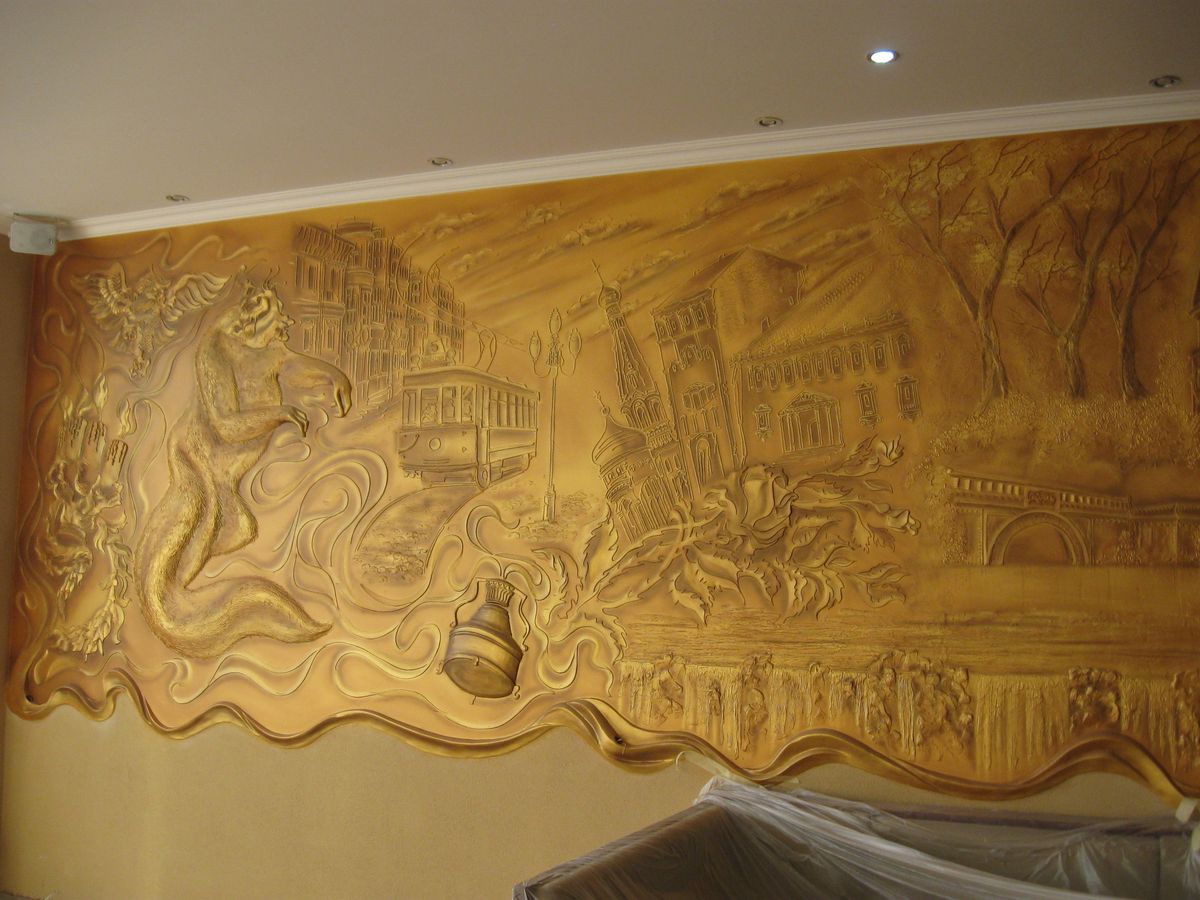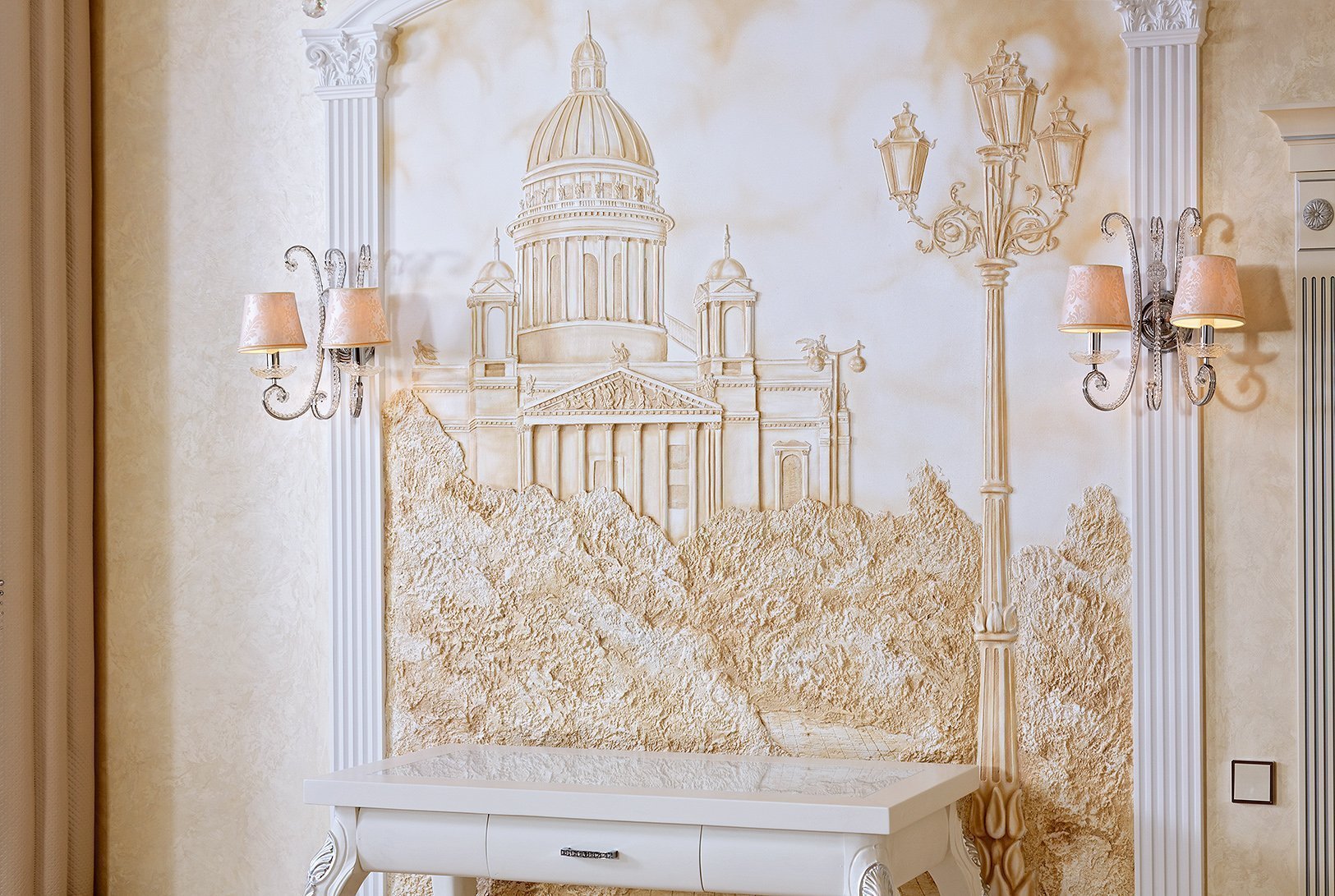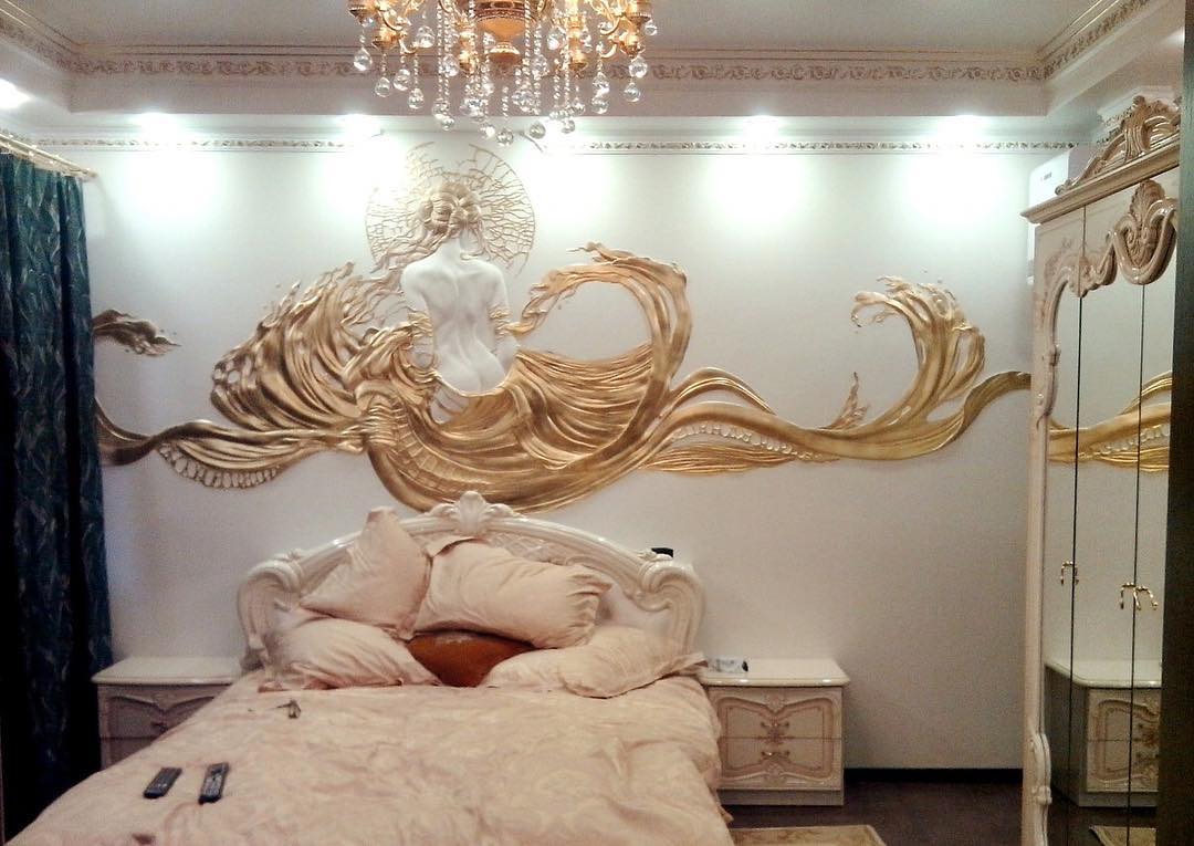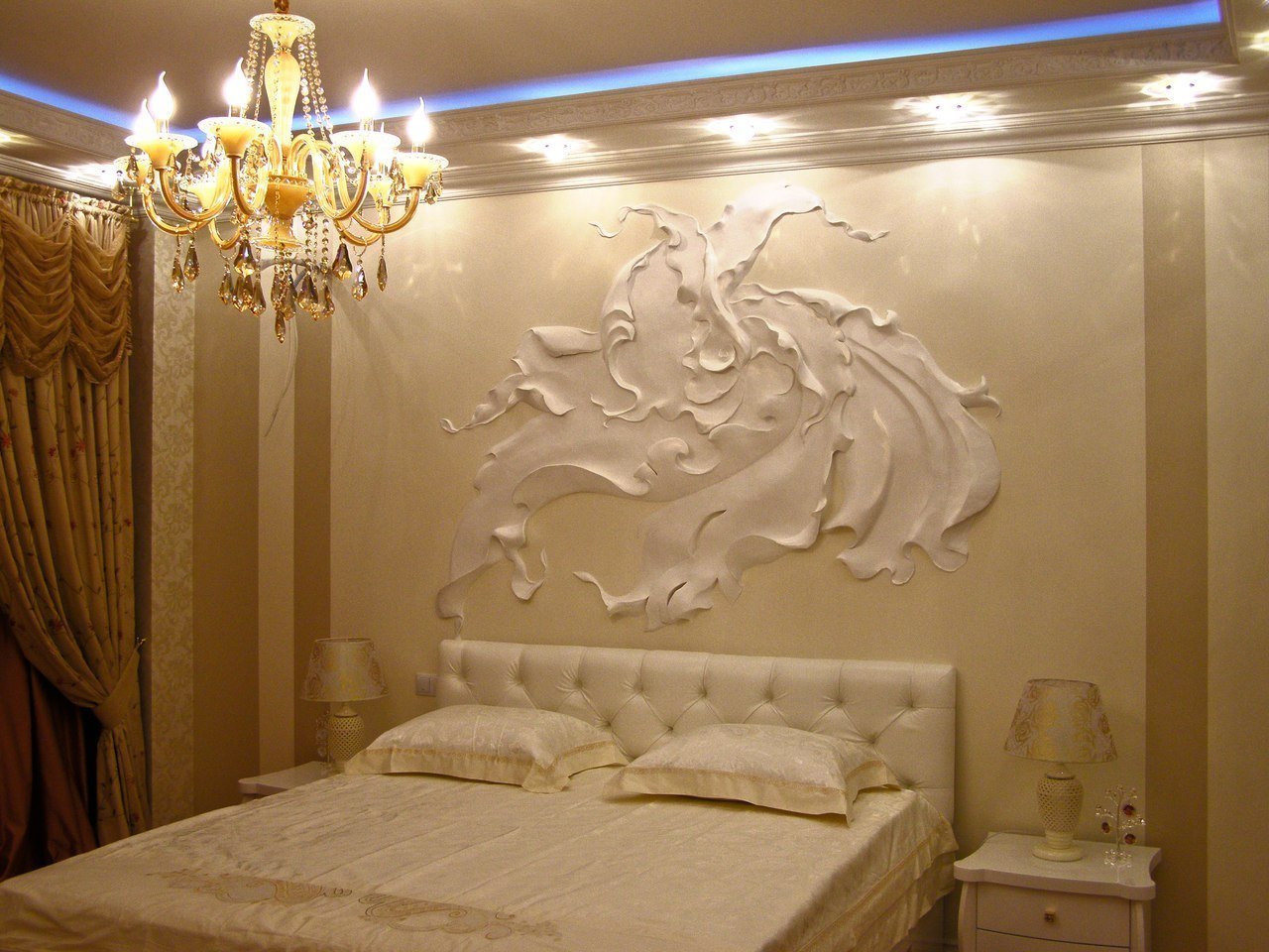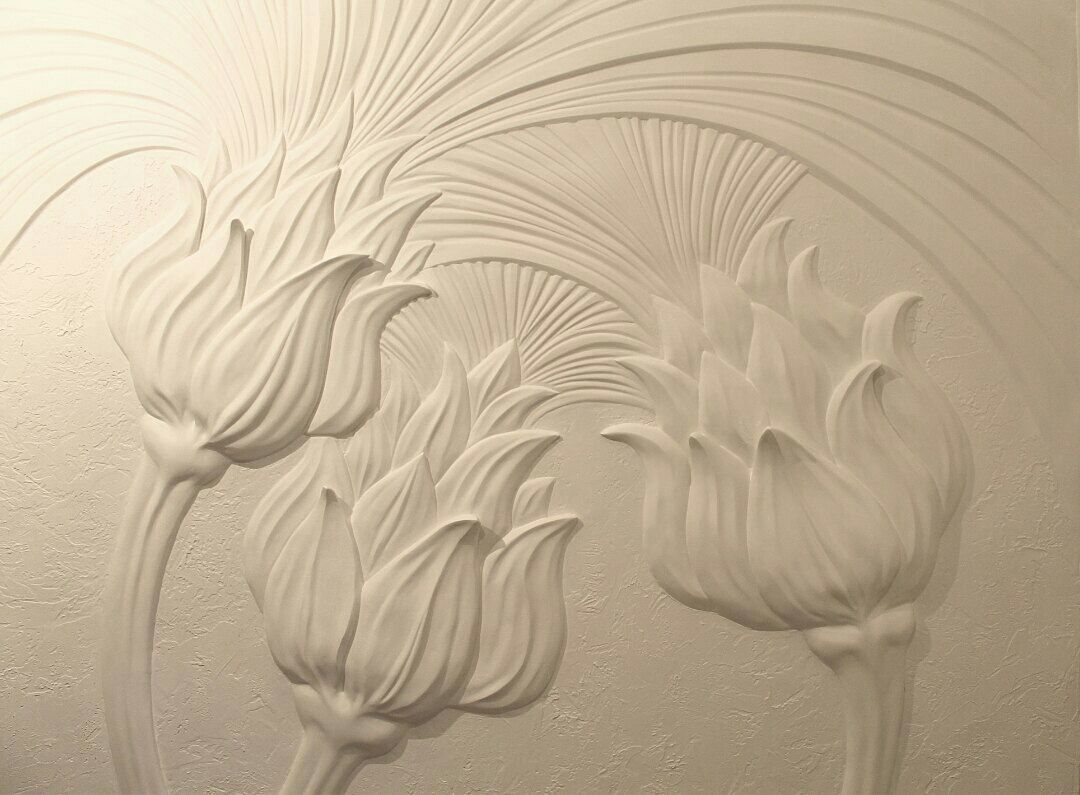 Los bajorrelieves no se usan con tanta frecuencia en el diseño. Es mucho más fácil pegar en la pared con un fondo de pantalla con la imagen deseada. La complejidad del proceso asusta a muchos. Si tiene paciencia, puede encontrar talentos ocultos en usted y decorar cada habitación del apartamento con pinturas volumétricas, haciendo que su diseño sea original y único. Para inspirarse, puede explorar los magníficos patrones escultóricos que adornan el Teatro Bolshoi de Moscú o numerosas casas en las calles de San Petersburgo.