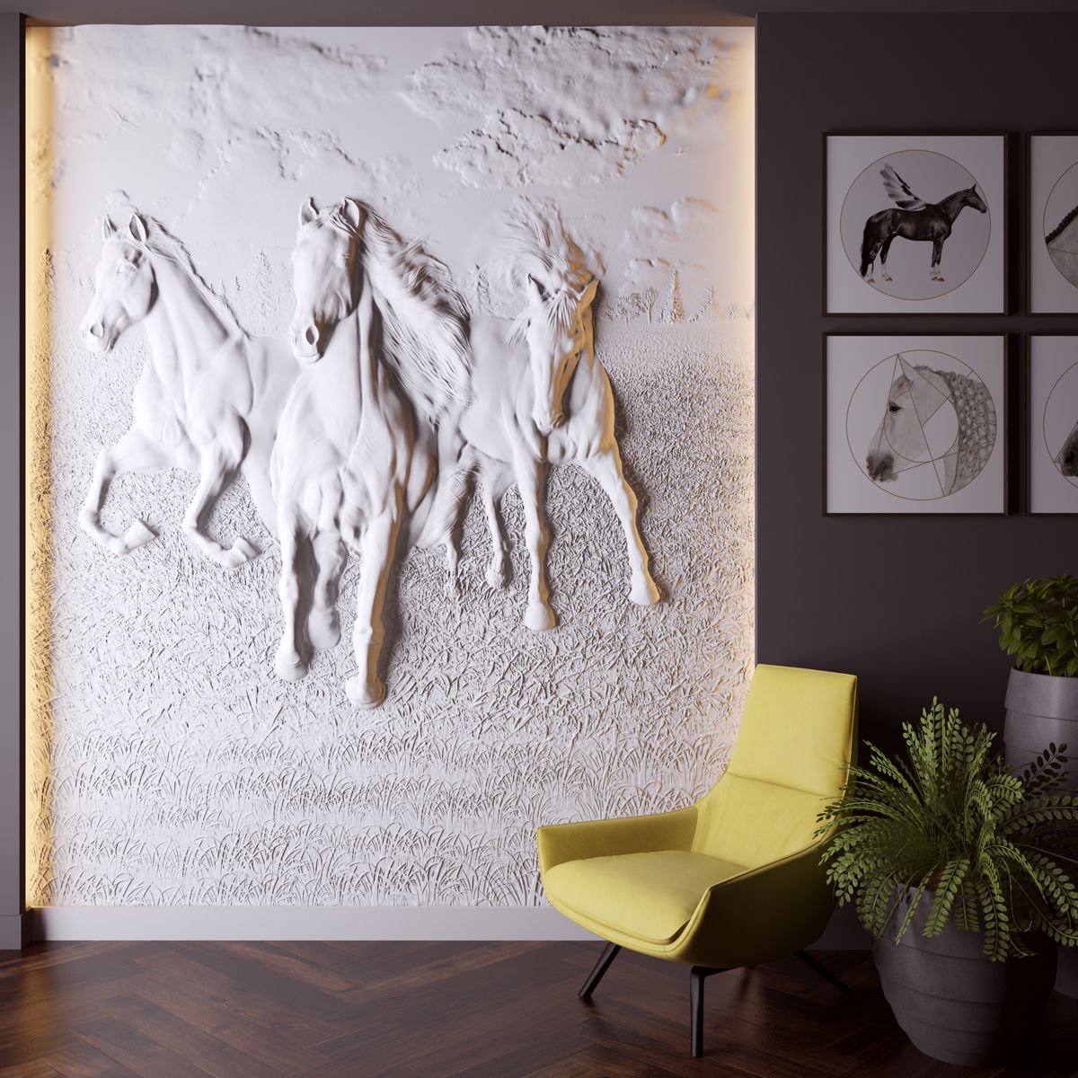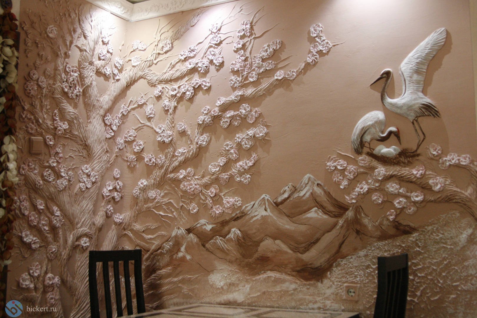 Elija un bajorrelieve no solo por el estilo, sino también por el carácter de la habitación. Los temas culinarios son adecuados para la cocina: bodegones voluminosos, arreglos florales o panoramas de ciudades antiguas. La habitación lucirá orgánicamente imágenes elegantes de elementos naturales: ramos, árboles, animales. En la habitación de los niños con la ayuda del alivio, puede crear un verdadero cuento de hadas, y sus escenas adornan todo el perímetro de la habitación.