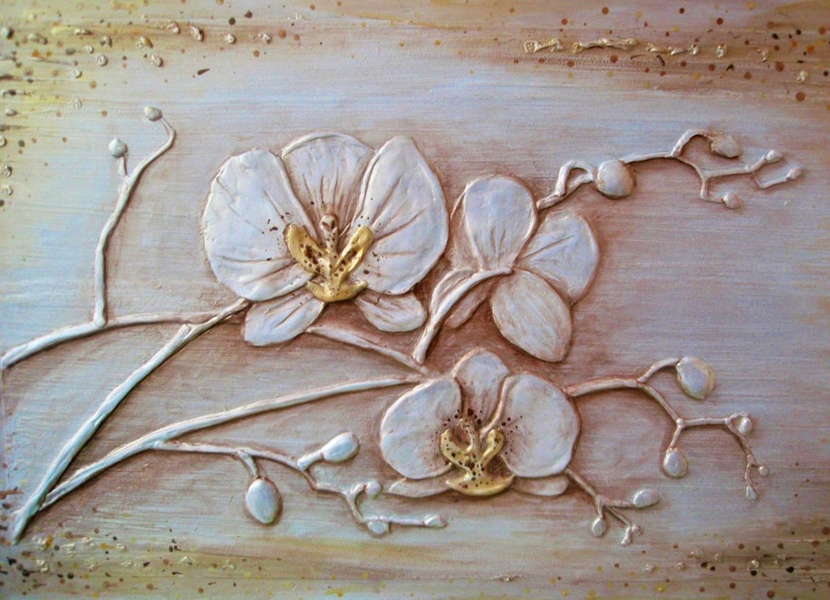 Los bajorrelieves son hechos a mano. Por supuesto, en el mercado de elementos decorativos baratos puede comprar estampado prefabricado de yeso, pero esto no agregará singularidad al diseño. Antes de comenzar a trabajar en su primera composición completa, debe llenar su mano. Es más conveniente entrenar en arcilla, yeso o yeso. Los materiales son plásticos y, hasta que estén completamente secos, pueden corregir errores. La madera contrachapada con un marco de madera bajo se utilizará como lienzo. En casos excepcionales, puede crear una composición directamente en la pared. Esta opción es adecuada solo para aquellos escultores que confían firmemente en sus habilidades. Directamente en la pared también crea panoramas a gran escala, que colgar después de la producción en lienzos separados será simplemente inconveniente. De antemano, también debe crear formas típicas para elementos repetitivos para reducir la complejidad del proceso.