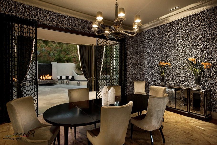 Una buena opción sería utilizar materiales con estampados dorados o plateados en relieve. No menos bien podrán reemplazar los materiales mate. Puede enfatizarlos con diferentes pinturas o marcos vacíos dispuestos al azar en un tono dorado y crema. También se permite pegar sobre resina con dos paredes a la vez ubicadas a los lados de la ventana. La solución de diseño moderno será el uso de dichos materiales para 3 paredes (aquellas en las que no hay ventanas). Pero deben complementarse con una iluminación brillante, un techo blanco brillante y un revestimiento de piso ligero. Los muebles también deben tener marcos de luz y tapicería.