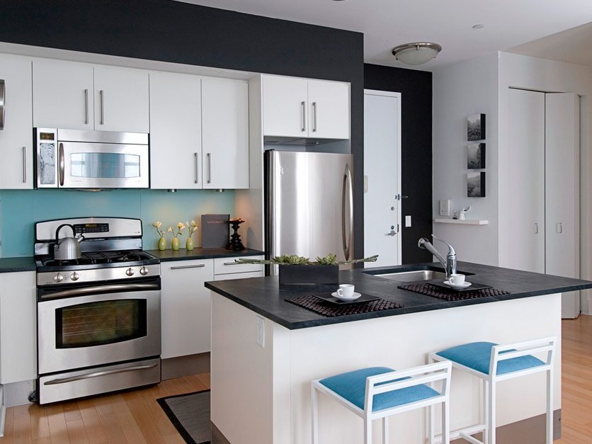 La combinación de colores. La combinación de tonos claros y oscuros elimina la limitación del espacio. Una opción de ganar-ganar es usar un acabado oscuro para una o dos paredes opuestas;