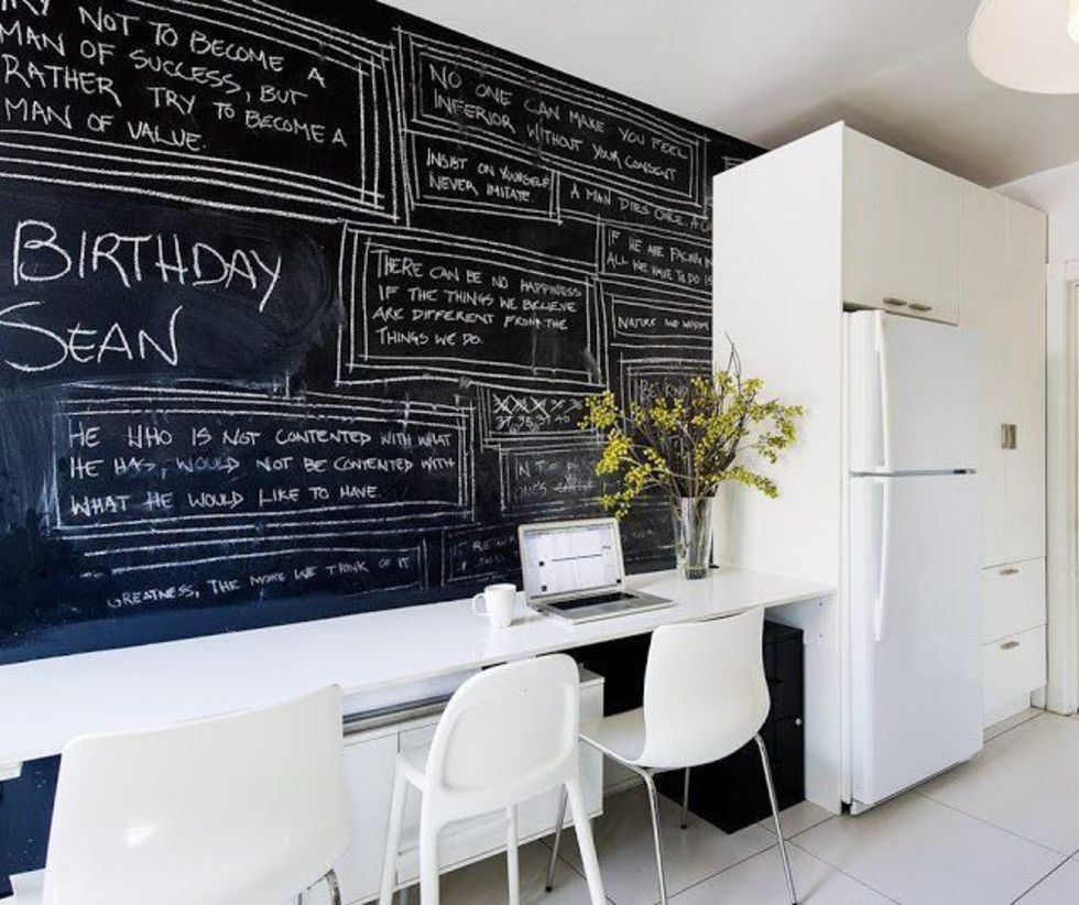 Selección cuidadosa del lugar de pegado. Los colores oscuros atraen la atención y distraen. No se recomiendan para la decoración de paredes en un escritorio, frente al área de recreación;