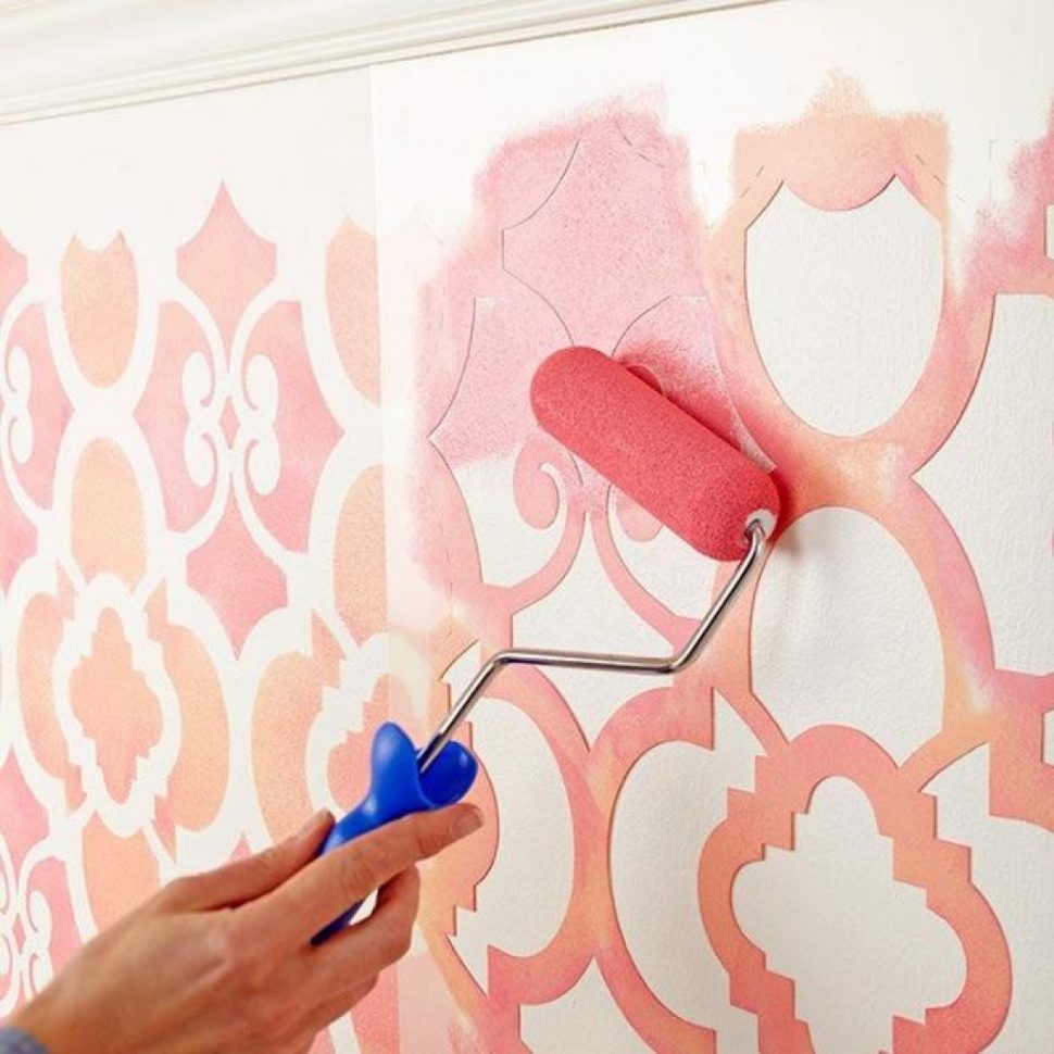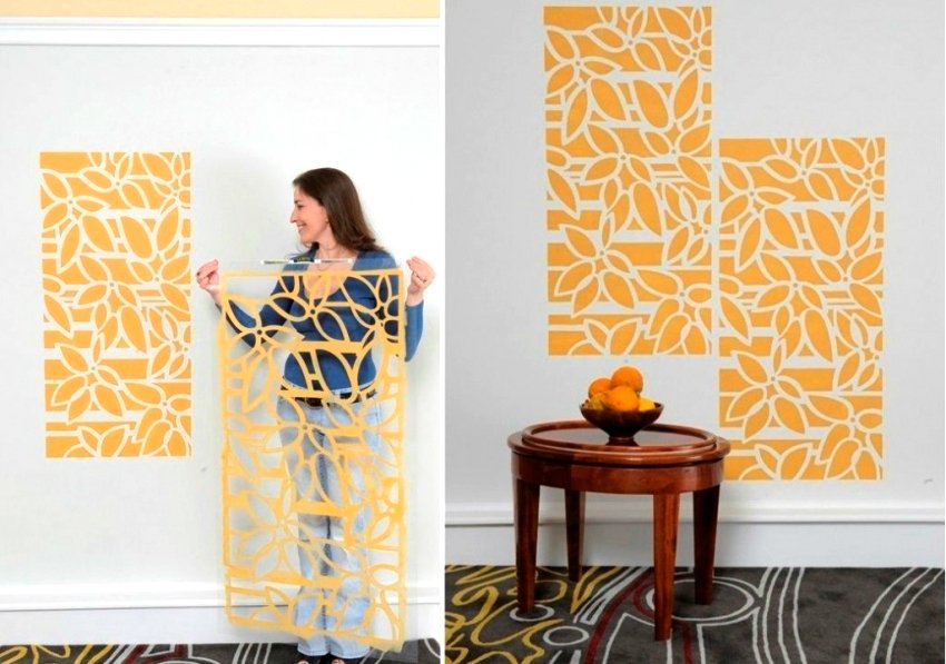 Si usa una plantilla hecha en casa con una imagen que se repite en los textiles, el diseño de la habitación encontrará la integridad, y no es necesario ser un artista para esto. Las plantillas se distinguen por los métodos de aplicación de pinturas: