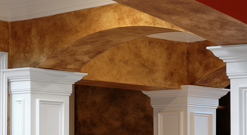 El resultado de la pintura parece que las paredes de la habitación están cubiertas de cuero, que se ve muy sólido en la oficina, el gabinete, varios interiores caros: barroco, imperio, clásico.