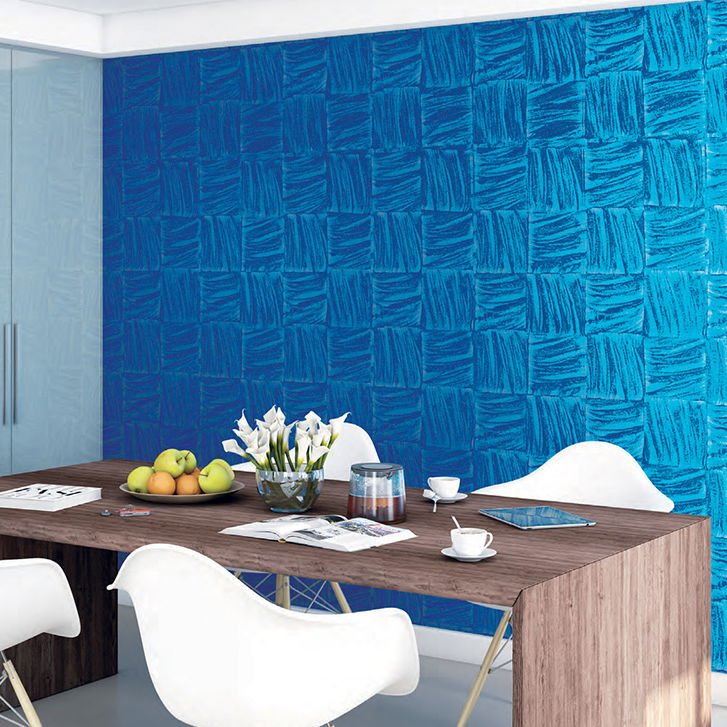 Debido a su alta resistencia al agua, el material es adecuado para paredes de cocina, un baño;