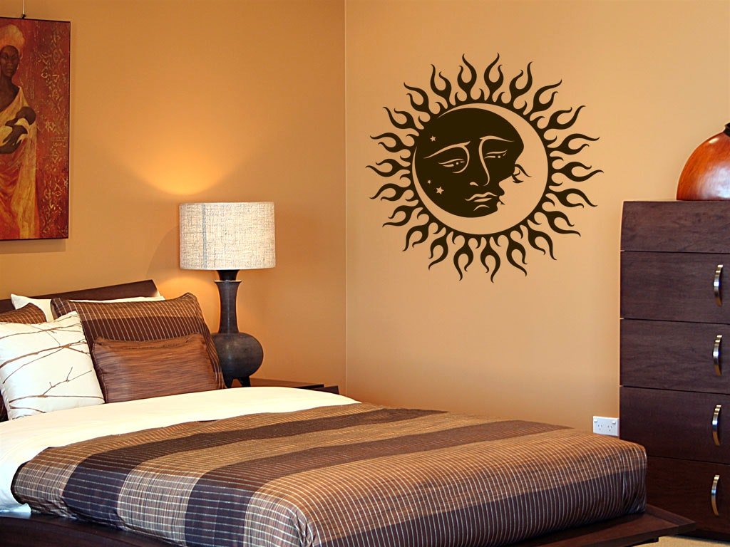 Después de hacer la elección, solo queda unir elementos decorativos a la superficie. Esto se hace rápida y fácilmente, las pegatinas se pegan como una cinta adhesiva normal. Primero debe pegar una pegatina en el área donde planea pegarla, luego se hacen marcas en los bordes para que la imagen se ajuste de la manera más uniforme posible. Después de eso, la pegatina debe pegarse suavemente a la pared, retirando gradualmente la película protectora. También será fácil de quitar y luego reemplazarlo con otra composición. Por lo tanto, el interior puede renovarse, su atmósfera puede cambiarse cuando lo desee, no proporciona grandes gastos monetarios y esfuerzos excesivos.