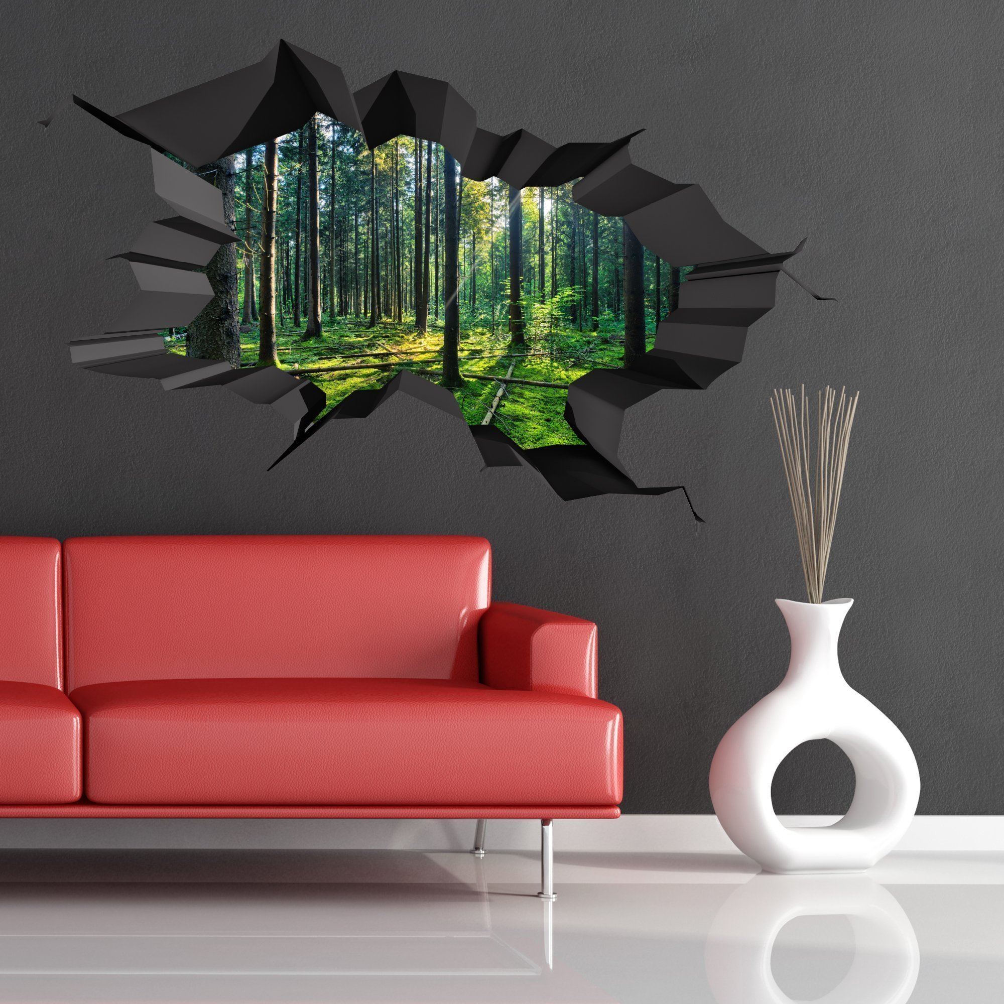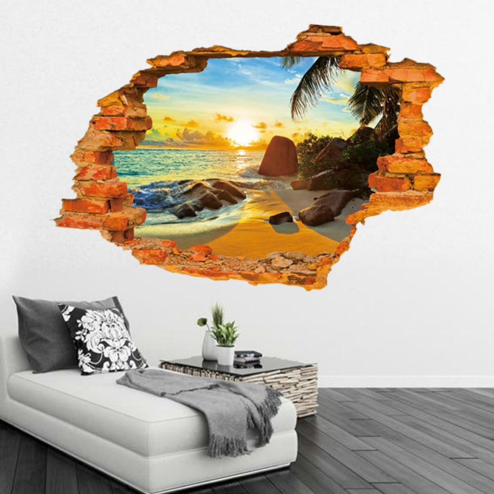 Las imágenes con ilusión óptica impresionan con su realismo y crean una increíble atmósfera interior. Las pegatinas 3D se ven como elementos volumétricos o como composiciones de trama con el efecto de la presencia. La ilusión de una amplia ventana que se abre hacia el paisaje de la ciudad o una pared en ruinas, detrás de la cual se encuentra una impresionante isla tropical, llama la atención y embruja. Las imágenes volumétricas también imitan hábilmente varios objetos y fenómenos naturales.
