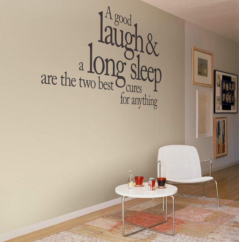 Para mostrar pensamientos sabios, expresiones interesantes, enfatizar un tema determinado, permitir pegatinas decorativas en las que se coloquen varias inscripciones. Una amplia selección de calcomanías para citas, aforismos y frases aladas le permite elegir una expresión individual que enfatiza el carácter y el estado de ánimo del propietario de la habitación, le da a la atmósfera toques pegadizos especiales. Por cierto, es posible componer cualquier frase usted mismo comprando letras individuales pegadas para esto. Puede emitir una inscripción de forma original seleccionando letras de diferentes tamaños y fuentes para cada palabra individual. Las frases decorativas pueden recordar lo importante, desempeñar un papel motivador o reflejar la sabiduría milenaria de los filósofos antiguos. Todo depende de la cosmovisión personal, la posición de vida y las preferencias de gusto de cada uno.