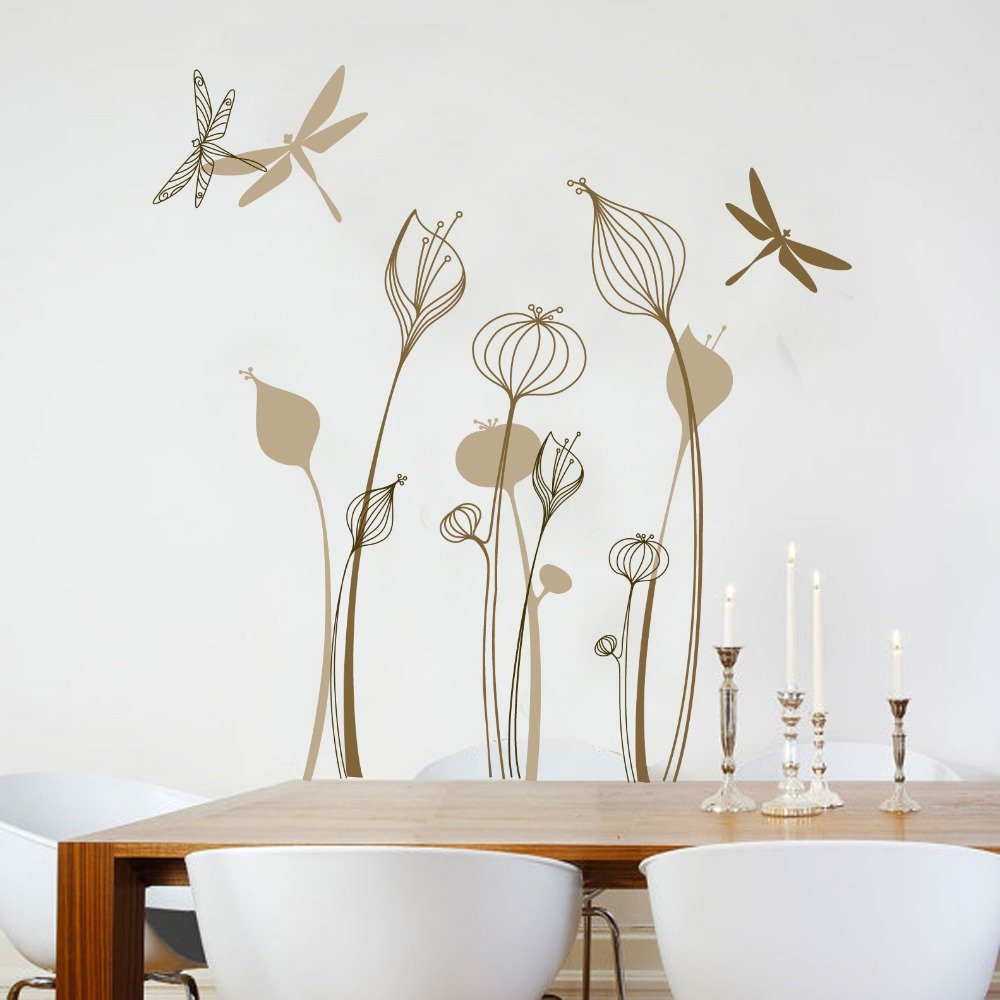 Estas decoraciones interiores originales son adecuadas para casi cualquier habitación. En la mayoría de los casos, están cubiertos con una película impermeable y son muy resistentes a la humedad. Los productos de vinilo se pueden limpiar con una esponja húmeda, no sobresalen del agua, por lo que se pueden colocar de forma segura en el baño y en los balcones. La creación de pegatinas decorativas es realizada por diseñadores profesionales que crean líneas perfectas, una combinación de colores exitosa, que encarnan ideas elegantes. Las pegatinas interiores están hechas de materiales que son absolutamente seguros para la salud humana. Son muy fáciles y simples de colocar en la superficie. Una rica variedad le permite satisfacer una amplia variedad de preferencias de sabor, mientras gasta una pequeña cantidad. El único inconveniente es la inestabilidad de las pegatinas decorativas para el alcohol y las soluciones químicas. Si están unidos a la superficie del papel, el agarre será lo más fuerte posible. Por lo tanto, quitar la pegatina será bastante difícil, tal vez se despegue una parte del fondo de pantalla.