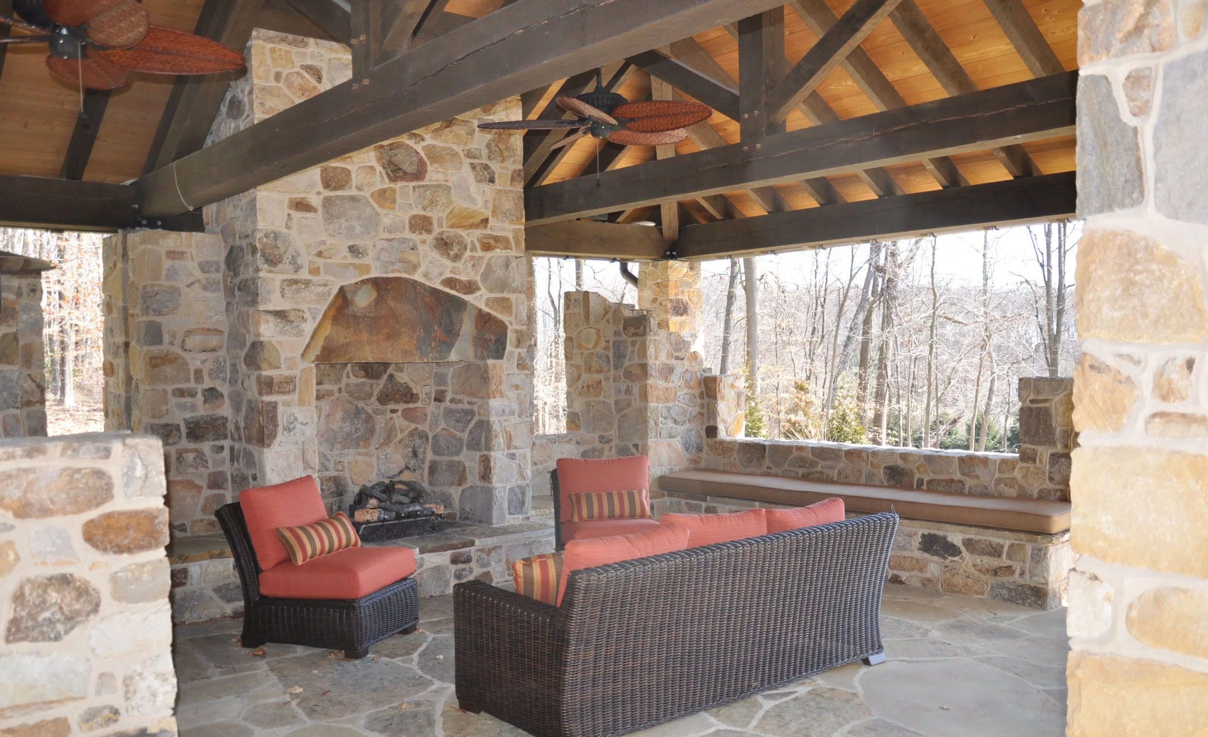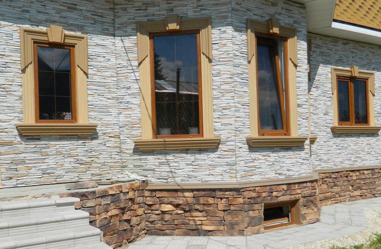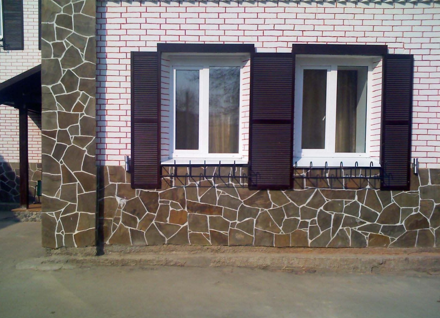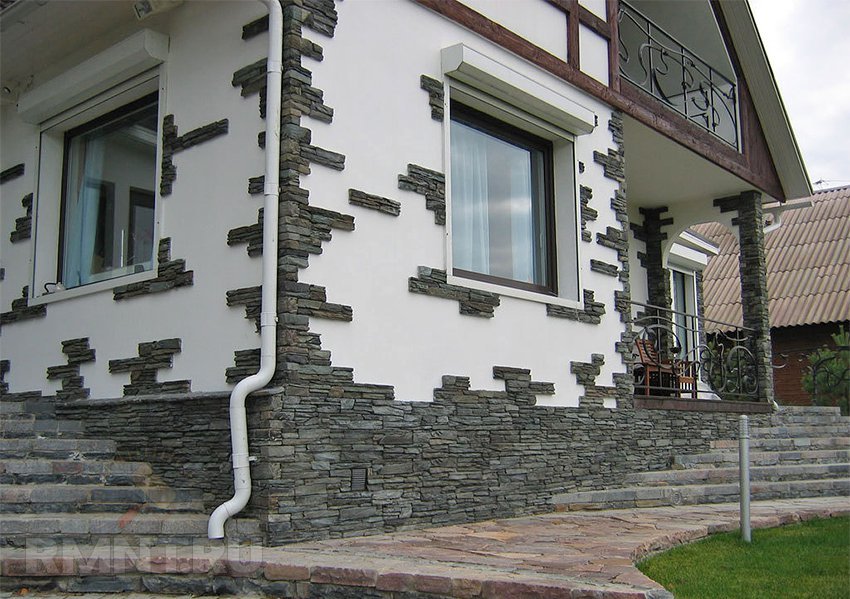 Otros acabados deben coincidir con el aspecto de la piedra: una pesada puerta de roble se ve muy bien con granito, los ladrillos se pueden pegar incluso por encima de ella, entonces el color del techo también necesita uno adecuado. Las partes inferiores de las paredes se forman con mayor frecuencia.