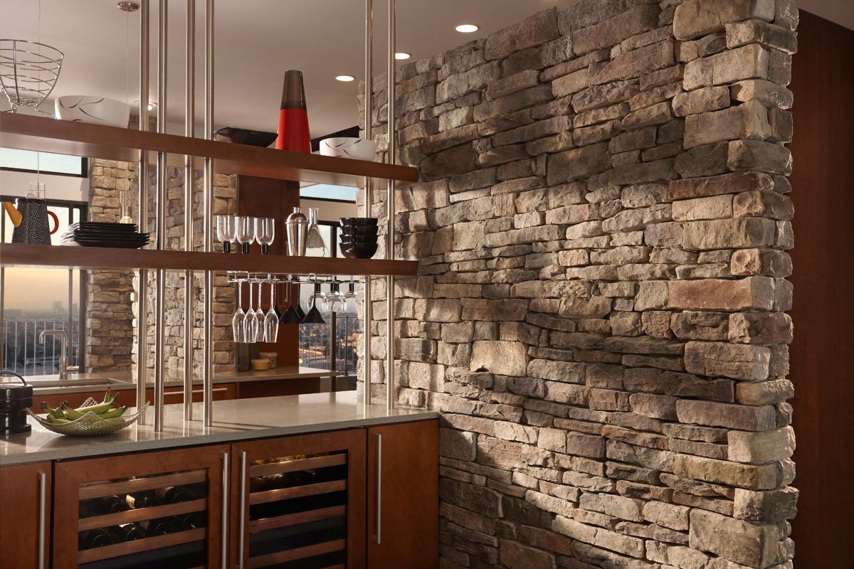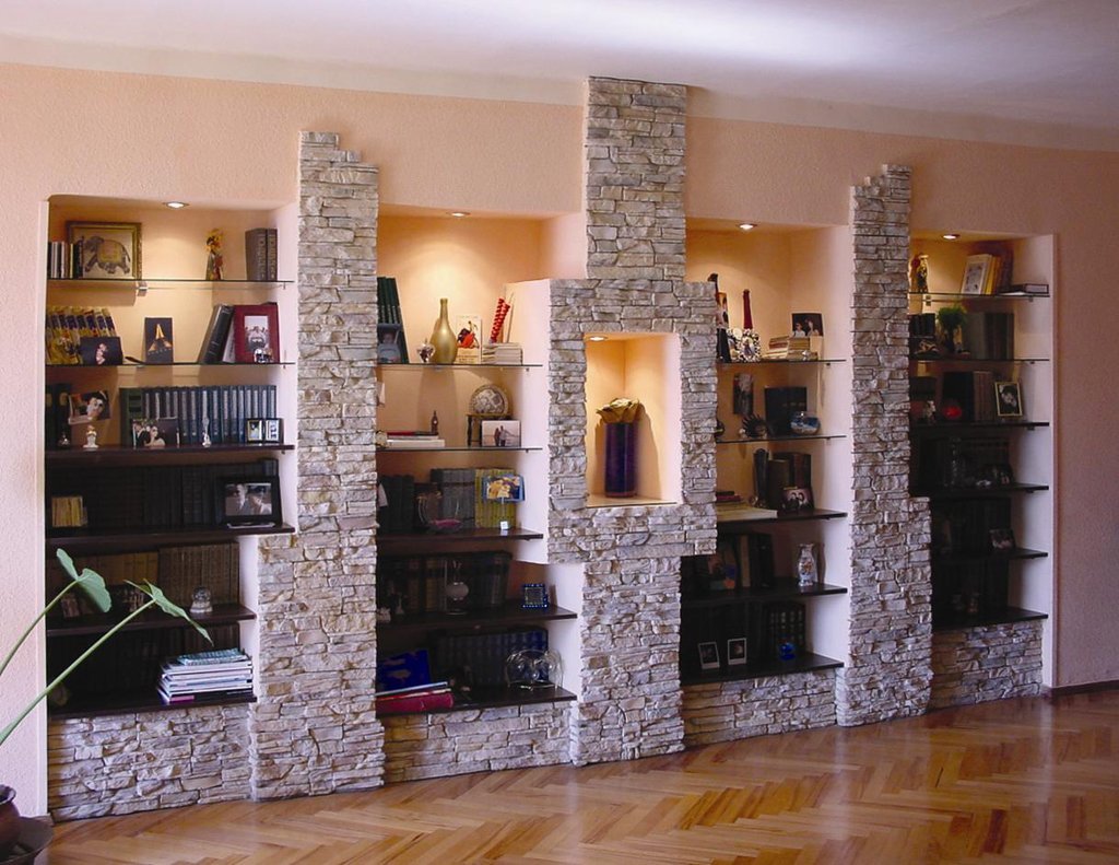 La decoración de la pared se divide en interna, externa. La piedra artificial generalmente se usa para trabajos en interiores: es más liviana, más barata y más fácil de colocar. Es muy popular ahora debajo de ladrillo, debajo de granito o mármol, arenisca, fagot y otros. De los naturales, se utilizan piedra caliza, roca de concha, pizarra, con menos frecuencia mármol, granito, ónice. Los naturales son adecuados para crear interiores caros, casi "eternos".