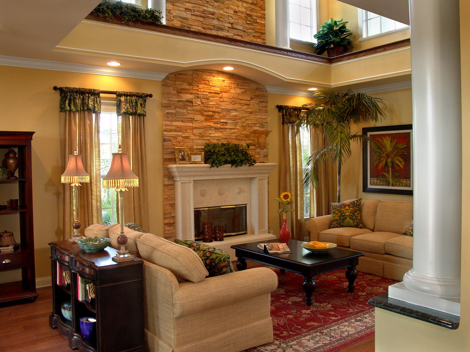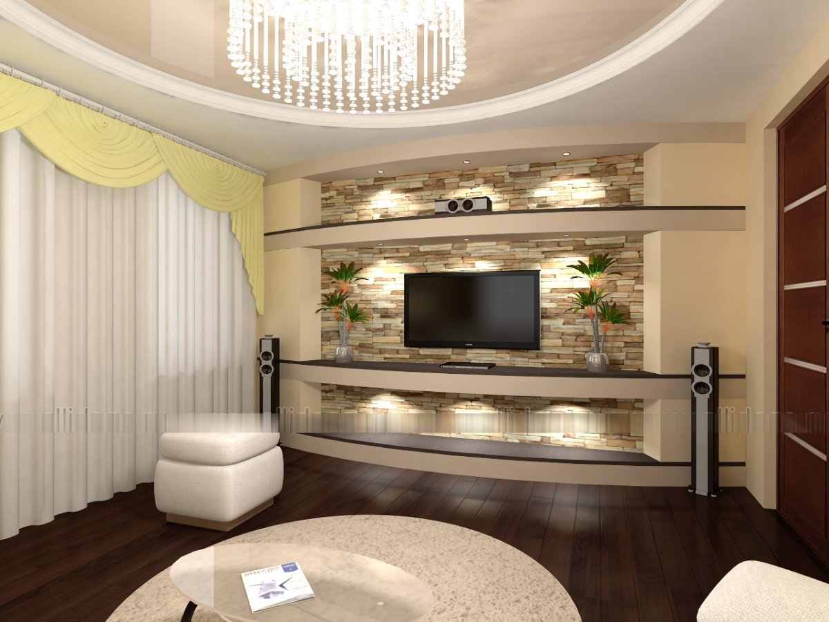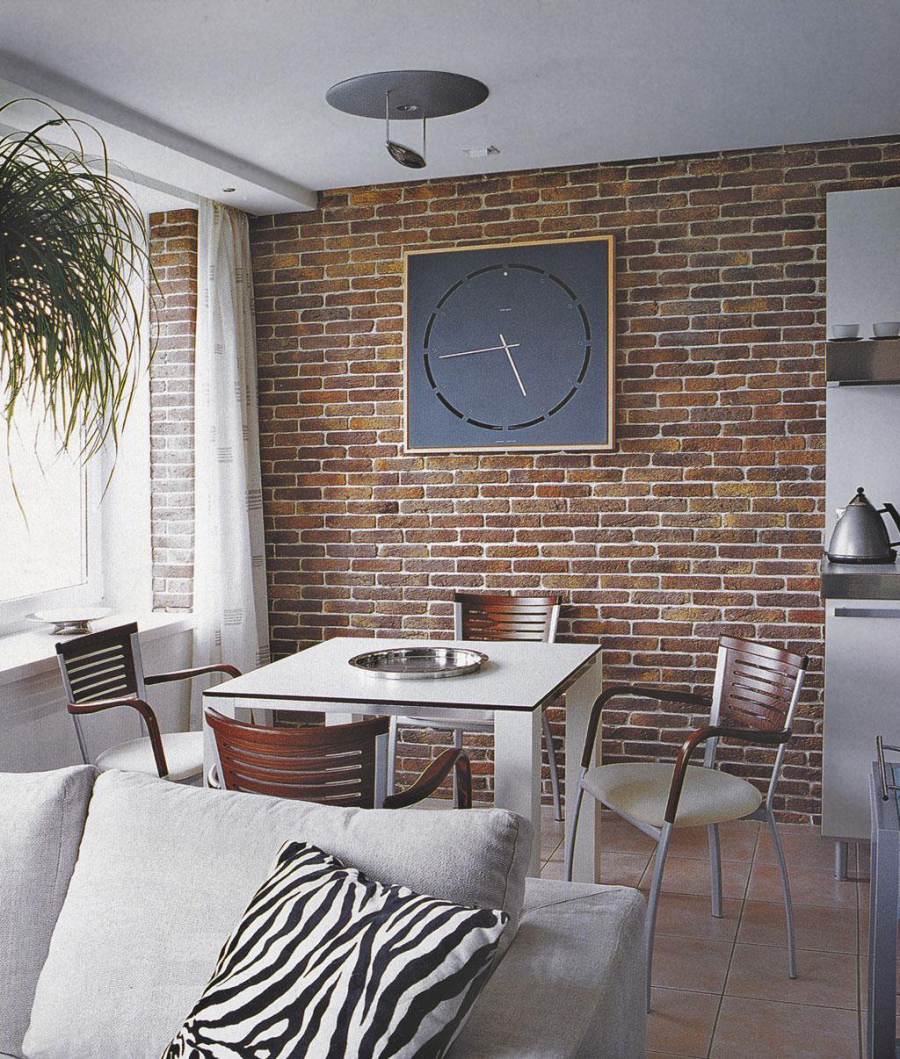 En la sala de estar a menudo hay plantas de interior, también se combinaron originalmente con paredes. Los floreros de vidrio, los muebles de metal, las macetas de arcilla estarán muy "en el tema". No se recomienda que coloque completamente el espacio de la habitación, otra sala de estar, con una piedra: hace mucho frío, es mejor limitarse a una puerta de ladrillo o piedra, decorar parcialmente las particiones (si las hay) entre la habitación y otra habitación de aglomerado, madera contrachapada.