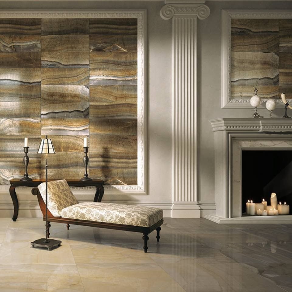 El ónix es una variedad fibrosa de cuarzo con impurezas. Esta es una piedra ornamental que es excesivamente difícil de procesar, costosa y puede explotar si se sobrecalienta. El forro se ve precioso, como si brillara por dentro. El material es duradero, cálido al tacto, el color es ámbar soleado, esmeralda, marrón rojizo;