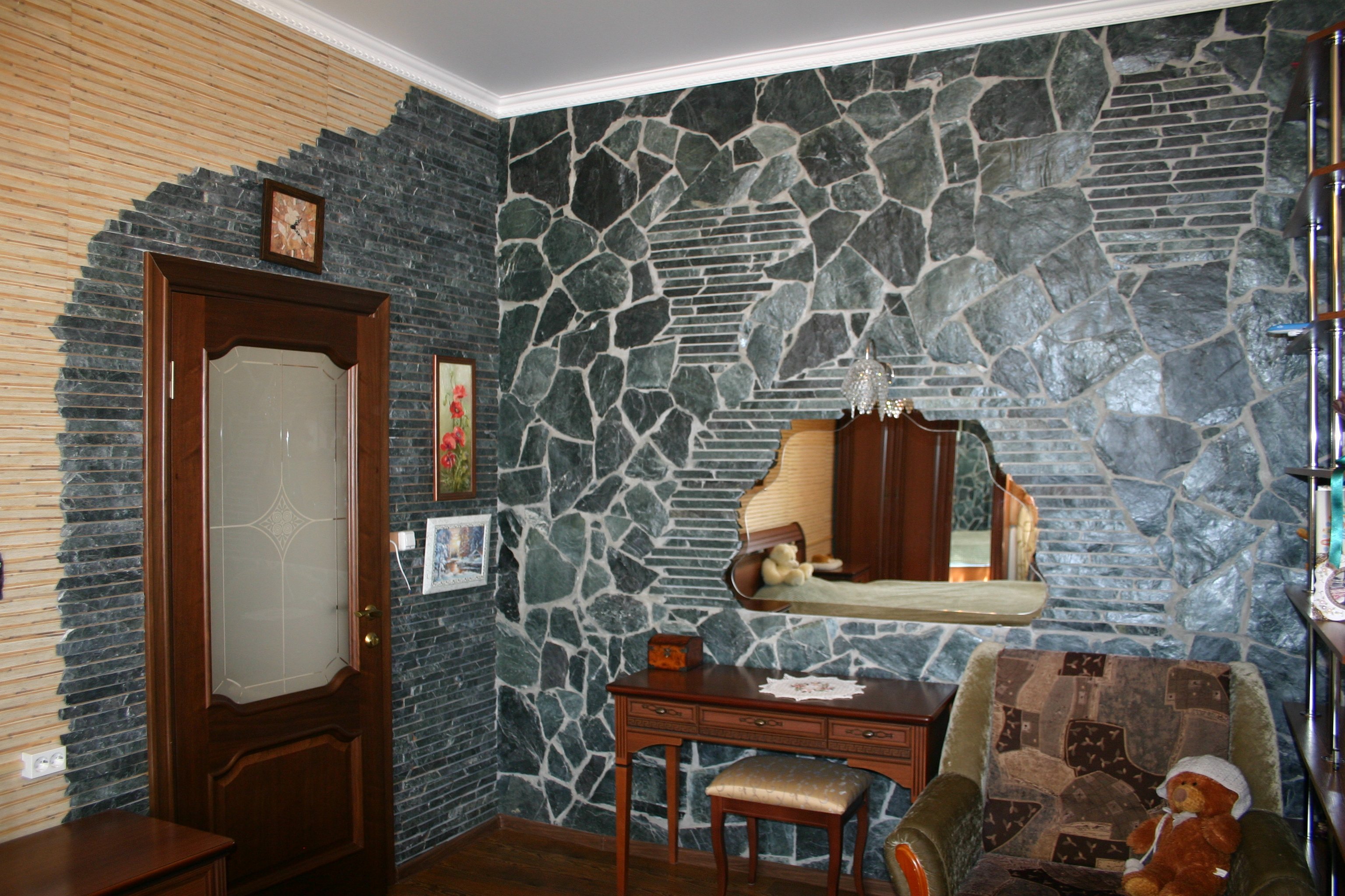 Natural es más difícil de apilar, debido a su mayor peso, artificial es más suave, más ligero. La piedra natural se extrae en condiciones naturales, principalmente triturando rocas. "Fake" está hecho de concreto coloreado, yeso, acrílico, resina de poliéster, aditivos minerales. También en su composición suele estar presente arcilla, astillas de piedra, elementos de fibra de vidrio, acero, todo tipo de pigmentos. La decoración natural para interiores se usa con menos frecuencia que la artificial, debido al hecho de que la mayoría de las especies son frías. Pequeños fragmentos, dibujos de ella decorarán cualquier habitación.