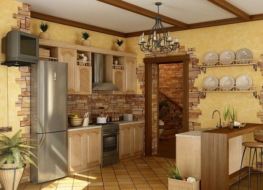 El diseño de las cocinas de una casa privada de metraje casi ilimitado representa un gran campo de actividad para el diseñador.Gran espacio libre, techos altos le permiten aplicar cualquier técnica estilística, jugar con una variedad de formas, colores. Las cocinas pequeñas imponen una serie de restricciones en el diseño de las paredes: