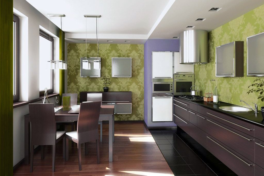A primera vista, puede parecer que es imposible cubrir la cocina con un hermoso fondo de pantalla no banal. Esto no es del todo cierto, con un poco de esfuerzo, atención a los detalles, puede crear un diseño de formato individual y elegante en su cocina.