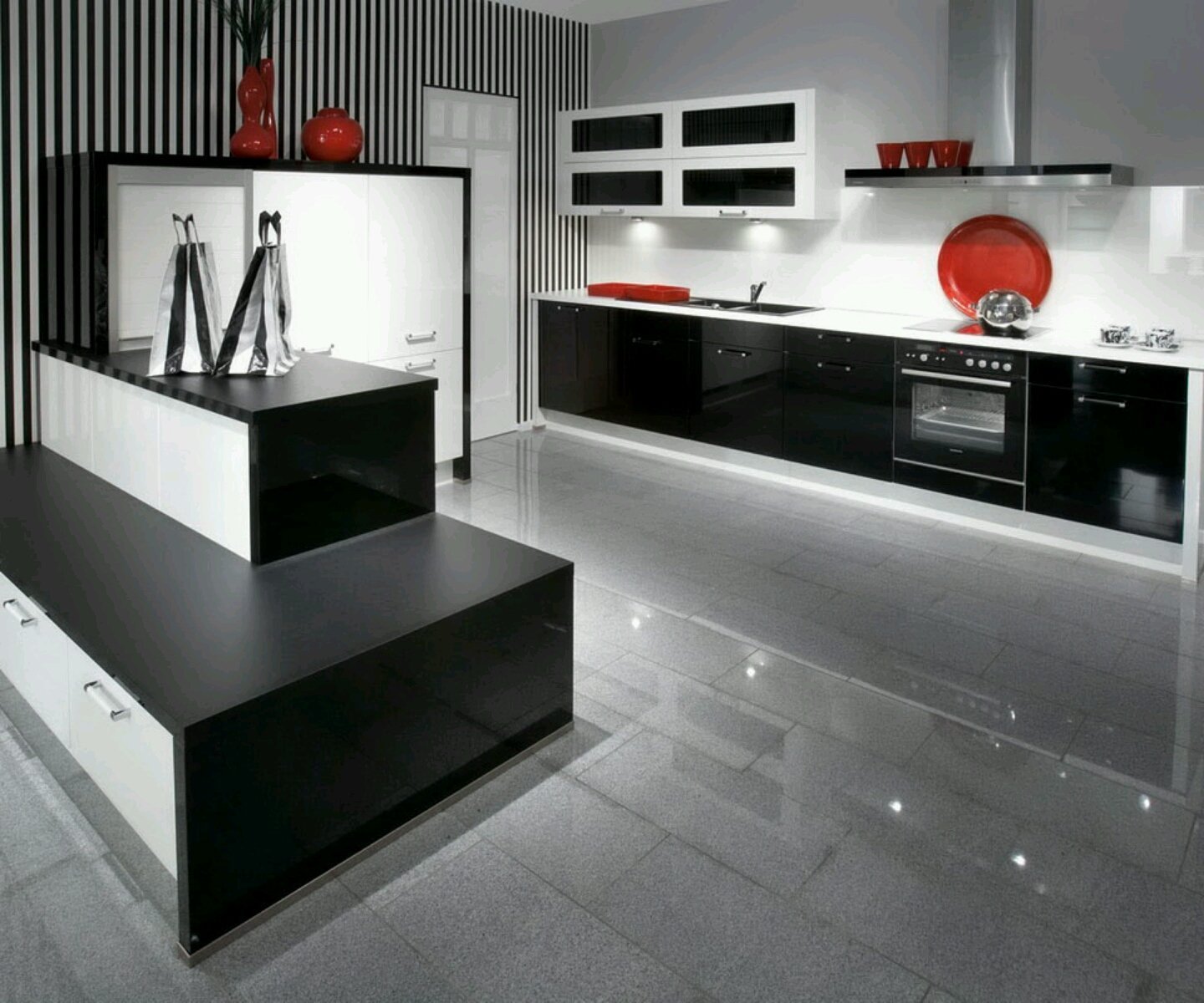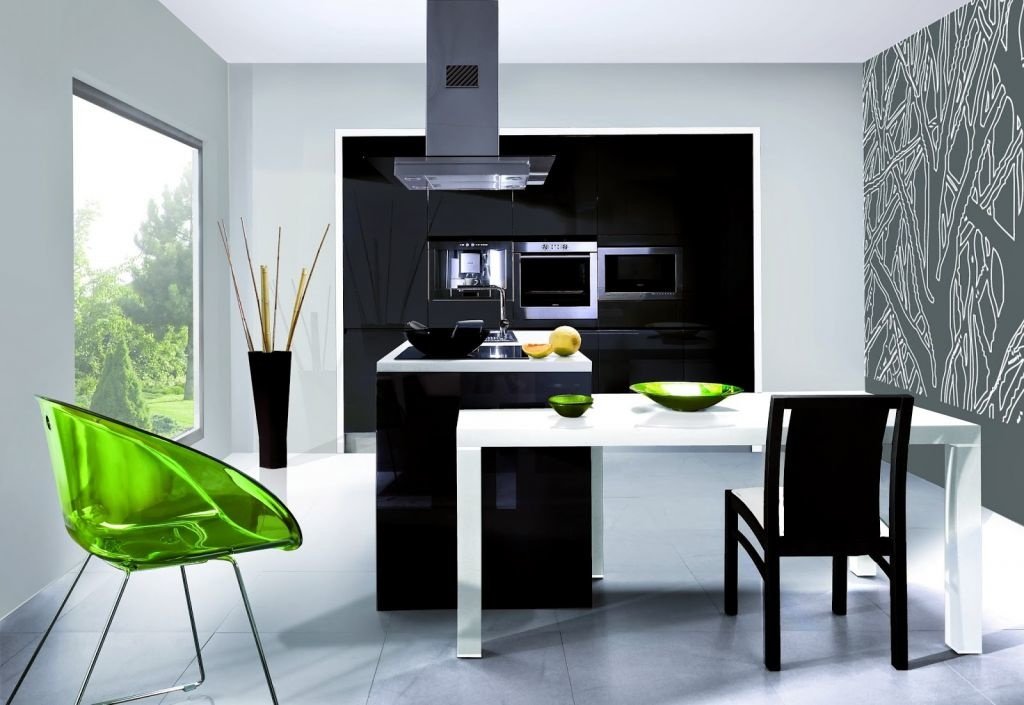 El color negro no puede llamarse el color principal de la paleta de diseño: a pocas personas les gustarán las paredes que parecen una cripta. La inclusión de papel tapiz negro en el espacio de la cocina en el estilo minimalista, art deco, escandinavo bastante diluido con el objetivo: