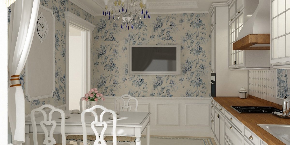 El ambiente acogedor del estilo provincial francés involucra las paredes de luz, colores claros. Muy a menudo, el patrón de papel tapiz es lacónico, flores delicadas, una franja estrecha, una celda discreta.