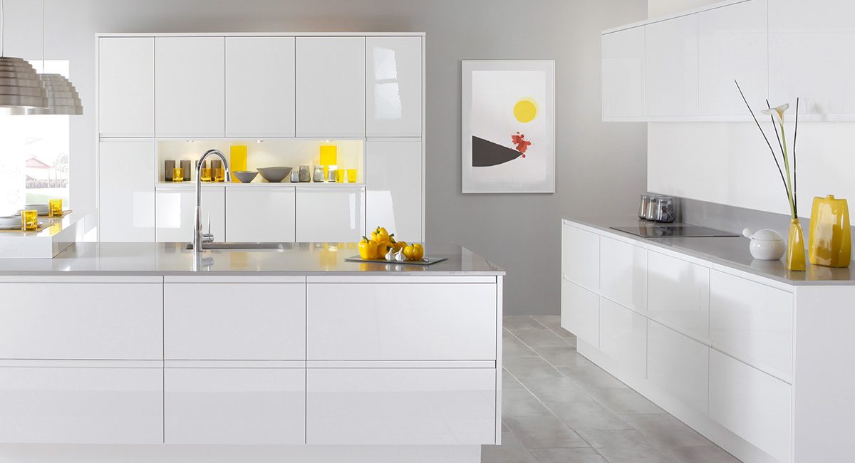 Las paredes blancas como la nieve son un ejemplo clásico de minimalismo, el diseño de papel tapiz para la cocina en colores blancos ilumina ópticamente el espacio, le da frescura. Las habitaciones con iluminación insuficiente se vuelven más claras, las habitaciones estrechas comienzan a parecer más espaciosas. El uso del revestimiento de acento ayuda a evitar el aburrimiento del diseño de la pared blanca como la nieve: los papeles pintados no se pegan con un lienzo monofónico sólido, complementado con rayas brillantes, elementos decorativos, papel tapiz fotográfico.
