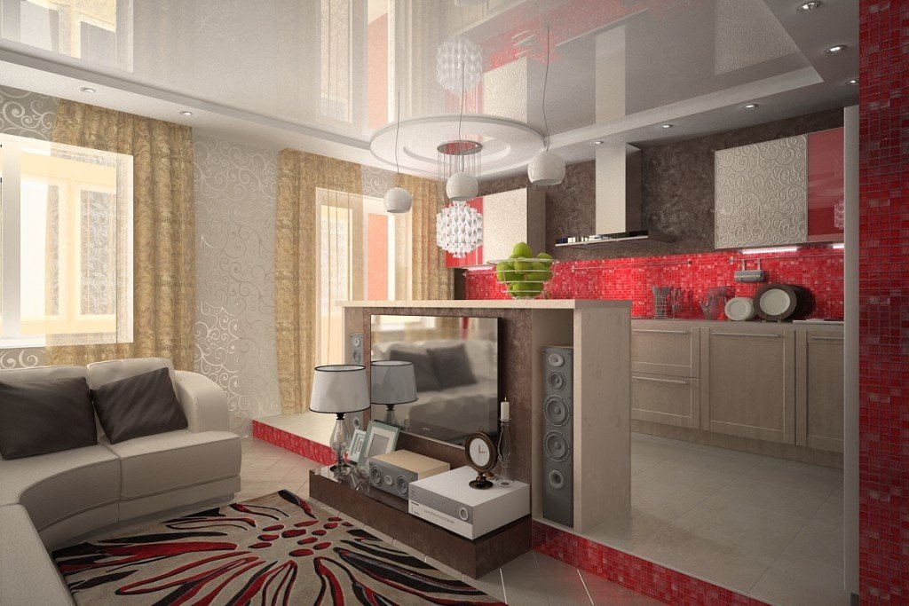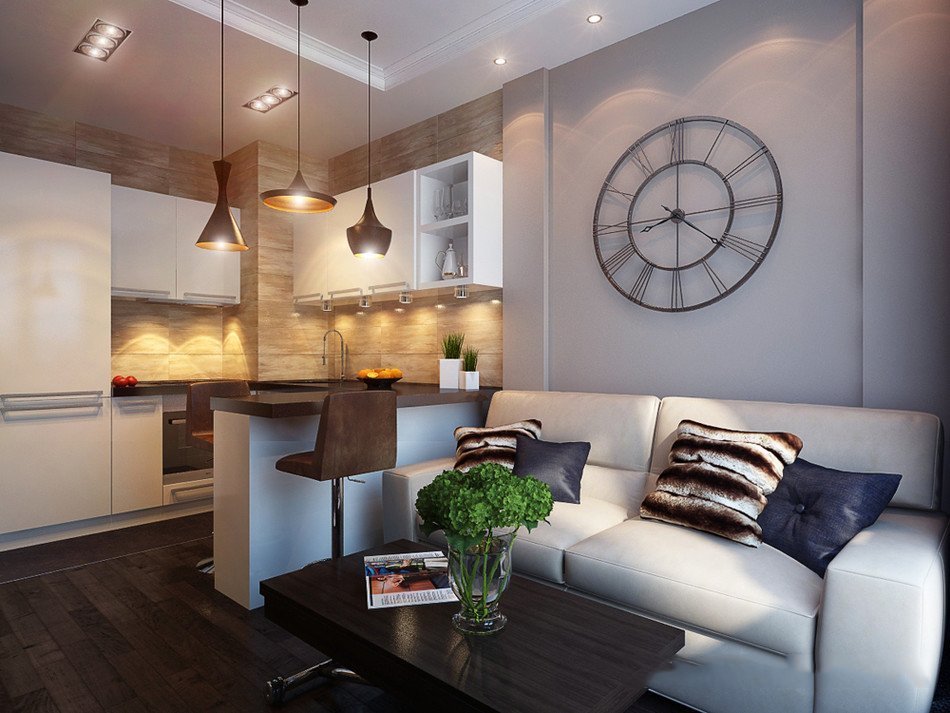 La combinación de dos áreas funcionales en una sala de estudio: cocina, el área de recepción implica una combinación armoniosa de diferentes impresiones, esquemas de color. La transición entre las zonas debe ser suave, sin causar una sensación de falta de armonía. Los especialistas en el campo de la decoración de interiores aconsejan utilizar una combinación de papeles pintados lavables para el área de trabajo con un segmento de precios elegante y costoso en el área de recepción. Un pequeño estudio necesita paredes claras. Los estudios modernos están decorados pegando una sala de estar con murales que se combinan con el diseño decorativo de las paredes de la cocina.