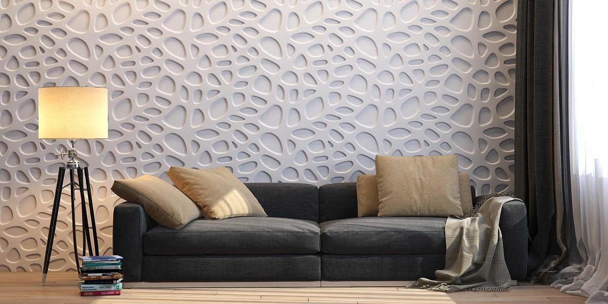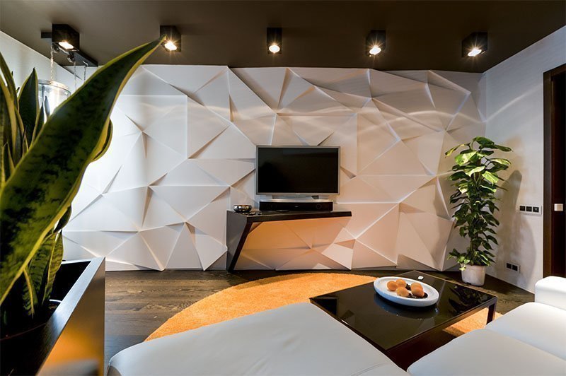 En una pared cubierta con paneles de yeso lisos, es fácil crear cualquier relieve utilizando yeso o yeso decorativo. Algunos fabricantes ofrecen productos a granel paneles 3D de yeso Con un diseño de relieve inusual. Es cierto que tal novedad a veces es difícil de encontrar en la venta gratuita, en algunos casos, los paneles se hacen por encargo.
