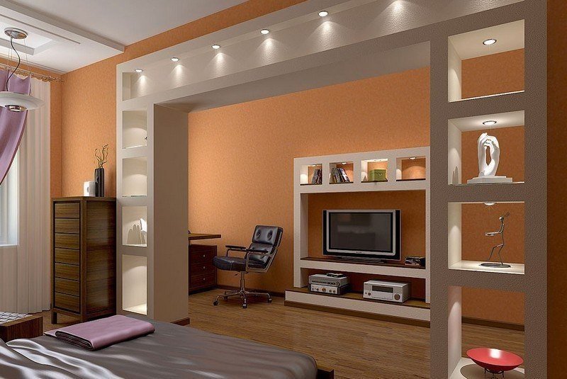 Los nichos de paneles de yeso le permiten ahorrar espacio en la habitación y proporcionar un lugar para almacenar cosas. A diferencia de los estantes, no se colocan en la pared, sino dentro de ella. Dichos diseños pueden realizar funciones prácticas y decorativas al mismo tiempo. Lo más importante en la creación de un nicho es el marco más duradero, que podrá soportar objetos pesados. Después de todo, a veces se les puede colocar un televisor de plasma, jarrones de cerámica y otras cosas. Si el marco no tiene suficiente resistencia, entonces el diseño simplemente se vendrá abajo. Por lo tanto, crea e instala nichos de paneles de yeso Debe un especialista experimentado y calificado.