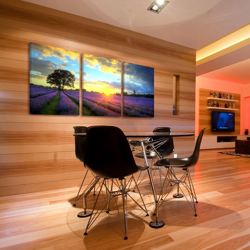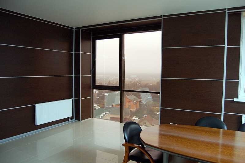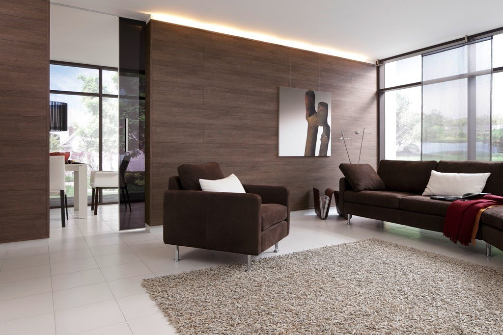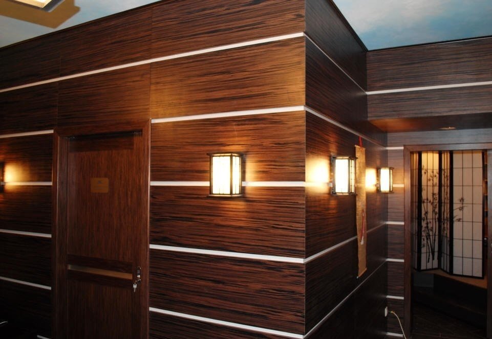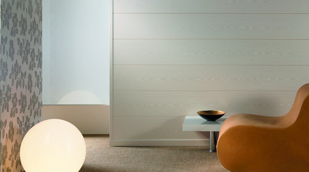 Los sofisticados paneles de paneles de yeso se ven elegantes y tienen éxito en el revestimiento. El material es ecológico y está dotado de altas características técnicas. Con su ayuda, las particiones se construyen para zonificar el espacio. Una idea no estándar es el revestimiento del laminado, realizado según el mismo principio que en el piso. El tipo de juntas de bloqueo está preseleccionado: para este uso, se ha desarrollado especialmente un sistema de fijación y barandilla que le permite montar paneles usted mismo. Montado en una caja o por pegado. Hay muchas aplicaciones: como elemento auxiliar, un delantal de cocina, destacando secciones individuales en el baño (paneles impermeables laminados). La dirección de colocación puede ser horizontal, vertical y árbol de Navidad, diagonal. El primer método es relevante para un área pequeña: los paneles se apilan enteros, las juntas se cierran con zócalos. La instalación vertical ayudará a aumentar la altura de los techos.