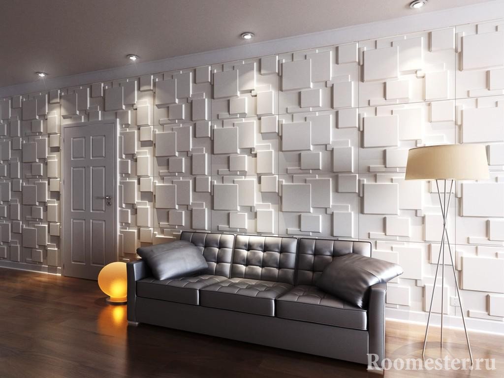 Los paneles de MDF son láminas hechas de prensado en seco de virutas de madera. Las fibras están unidas por la lignina ecológica obtenida de la madera. El material se puede fresar, pulir, pegar, taladrar y montar fácilmente. Arriba, se pueden realizar cortes decorativos y cortes de varios patrones. Los paneles de paneles de MDF son los más populares debido al ingenio de la instalación: hay un peine en un lado y una ranura en el otro. La variedad de mosaico se asemeja a mosaicos de gran tamaño (la instalación es similar a la anterior). Los paneles de chapa pueden tener dimensiones y decoración desiguales. La superficie frontal puede ser: chapeada: la textura y el color se hacen "debajo de la madera"; laminado: con la aplicación de una película de cloruro de polivinilo de varios tonos, imágenes y texturas. Además, la decoración se puede hacer con la impresión fotográfica de moda: la imagen de la foto está cubierta con barniz repelente al agua sobre una base acrílica. Los paneles de MDF con efecto 3D no son menos demandados, cuya superficie está hecha en forma de ondas, figuras volumétricas, relieve.El material también se puede tratar con pinturas especiales con nácar o plata.