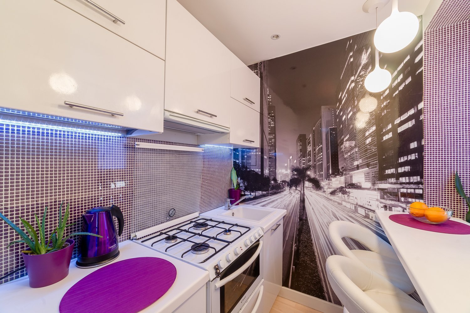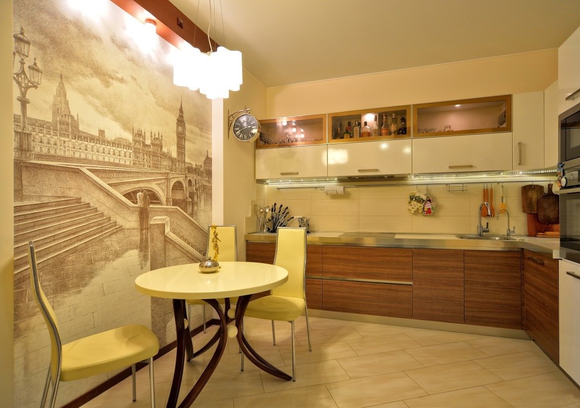 La iluminación brillante de la habitación o la ausencia total de luz solar durante el día en la cocina también afecta las características de la selección de papel tapiz óptimo con impresión de fotografías.Al ver las opciones, se recomienda a los propietarios que utilicen los siguientes consejos: