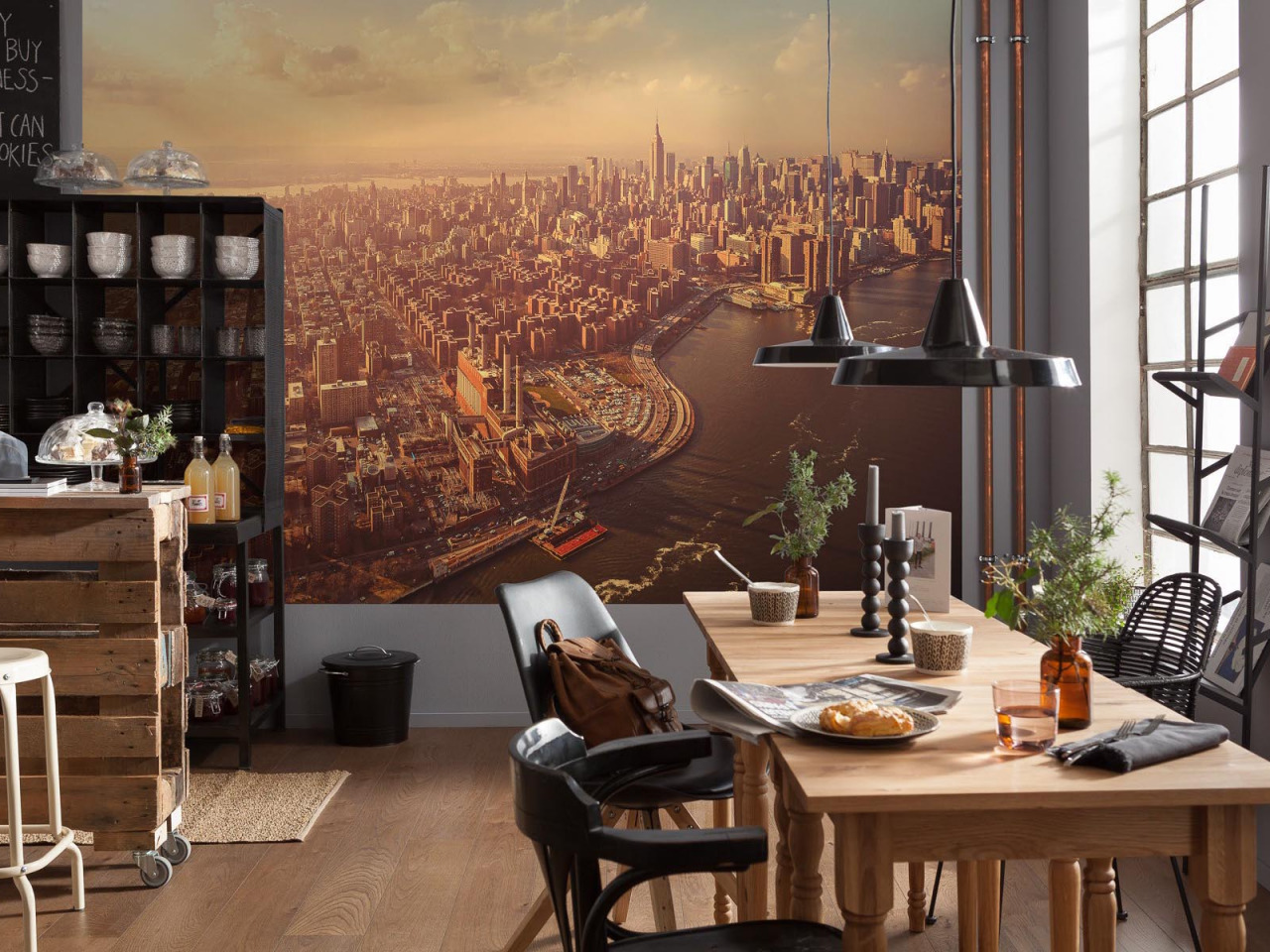 Para cualquier interior, puede elegir el fondo de pantalla apropiado con vistas a la ciudad.