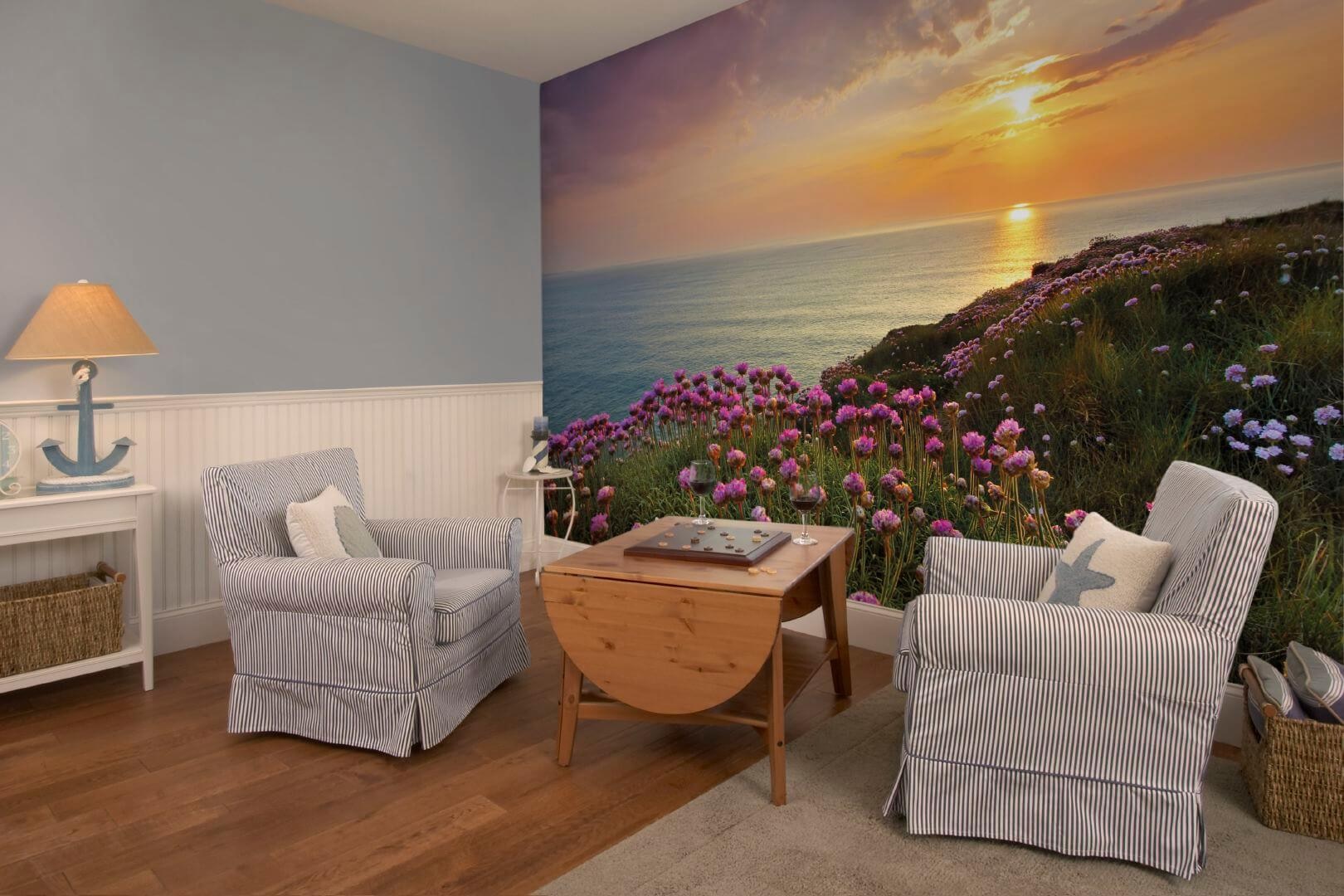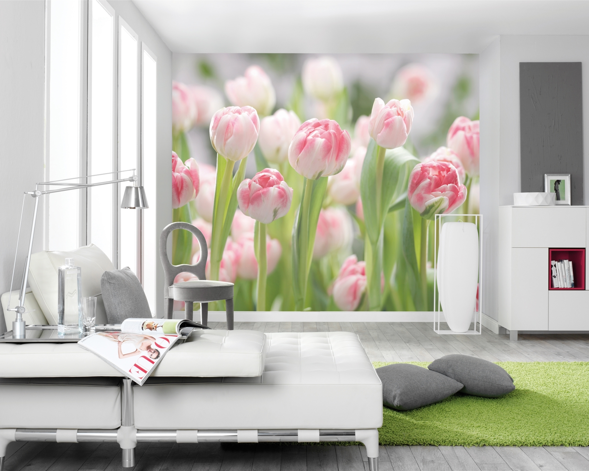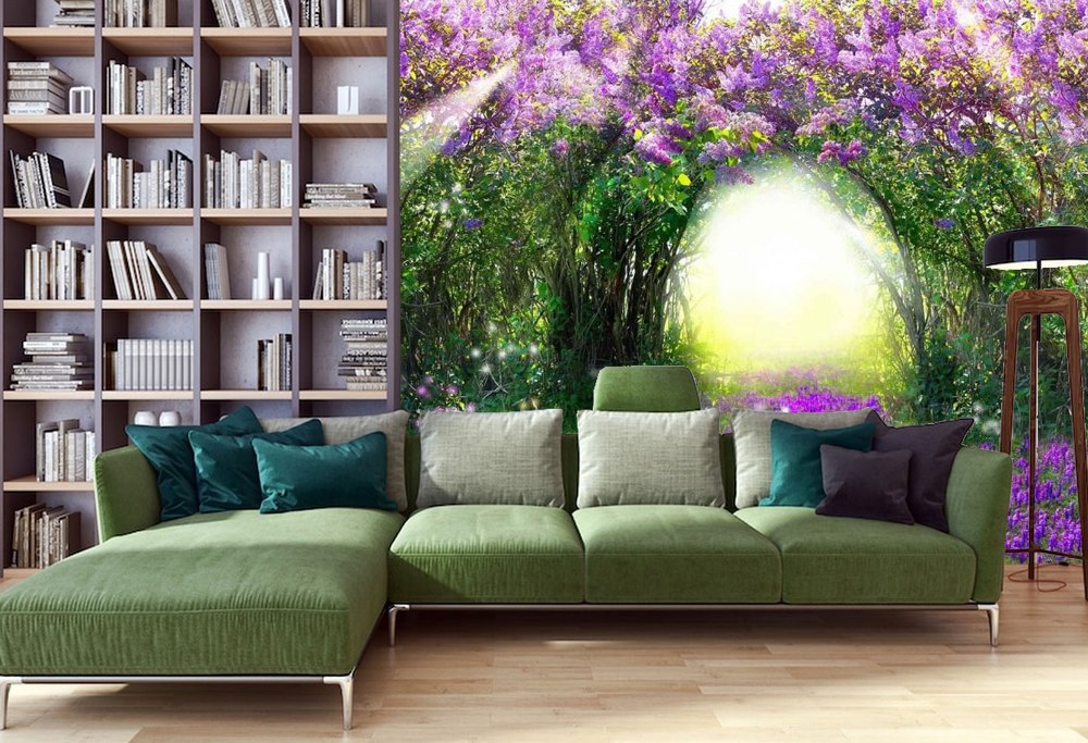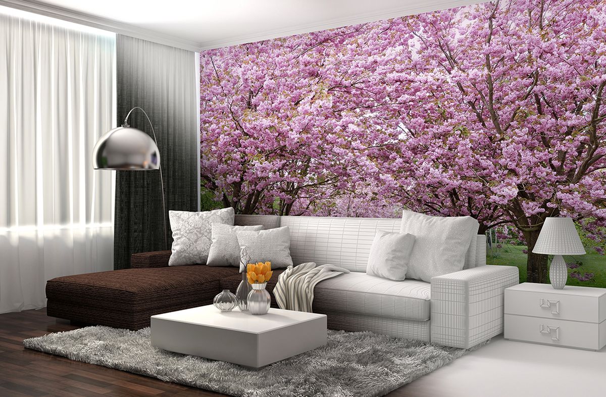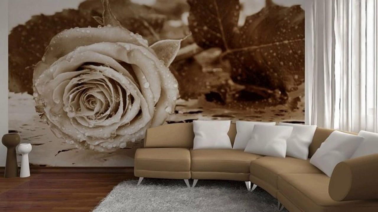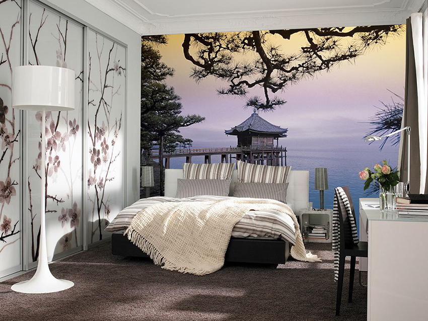 - La capacidad de enfatizar el tema y el estilo de la habitación. Las imágenes de flores de bambú y sakura serán apropiadas en el interior japonés, el océano Mediterráneo, un montón de bloques de hormigón o una pared con ladrillos en relieve en el desván, los campos de lavanda en flor en Provenza solo mejorarán la impresión del resto de la habitación.