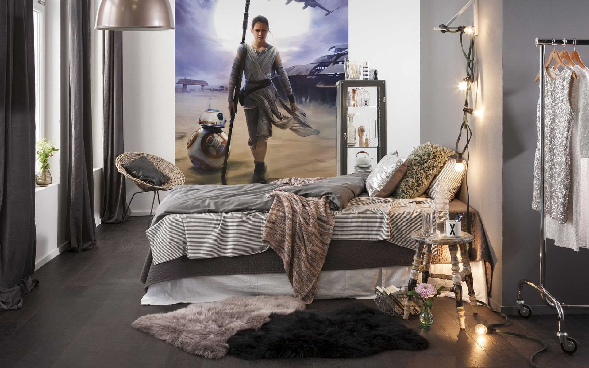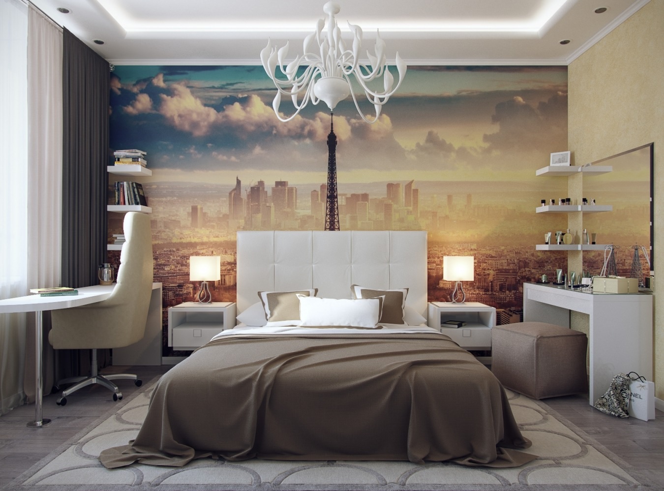 Muy a menudo, el papel tapiz fotográfico en el dormitorio toma el lugar: