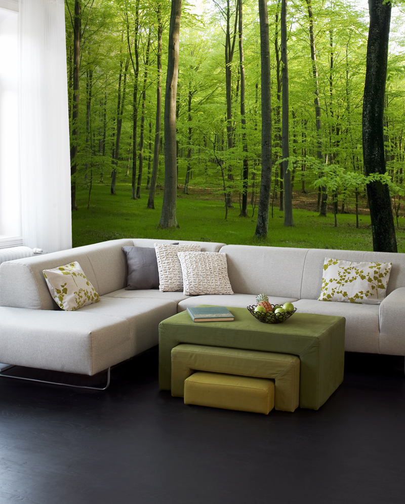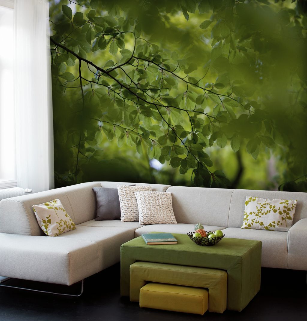 Los paisajes naturales (bosque, pradera, campo, mar, montañas) son los motivos favoritos de la mayoría de las personas. La naturaleza en diferentes épocas del año podrá decorar varios interiores. Si se usan colores cálidos en el interior, el bosque otoñal encajará perfectamente en él y los tonos fríos se combinarán perfectamente con los árboles nevados.