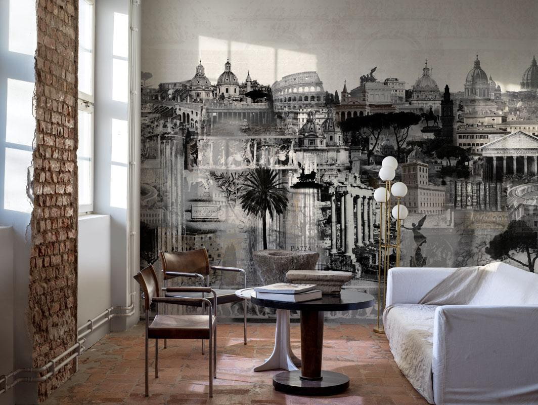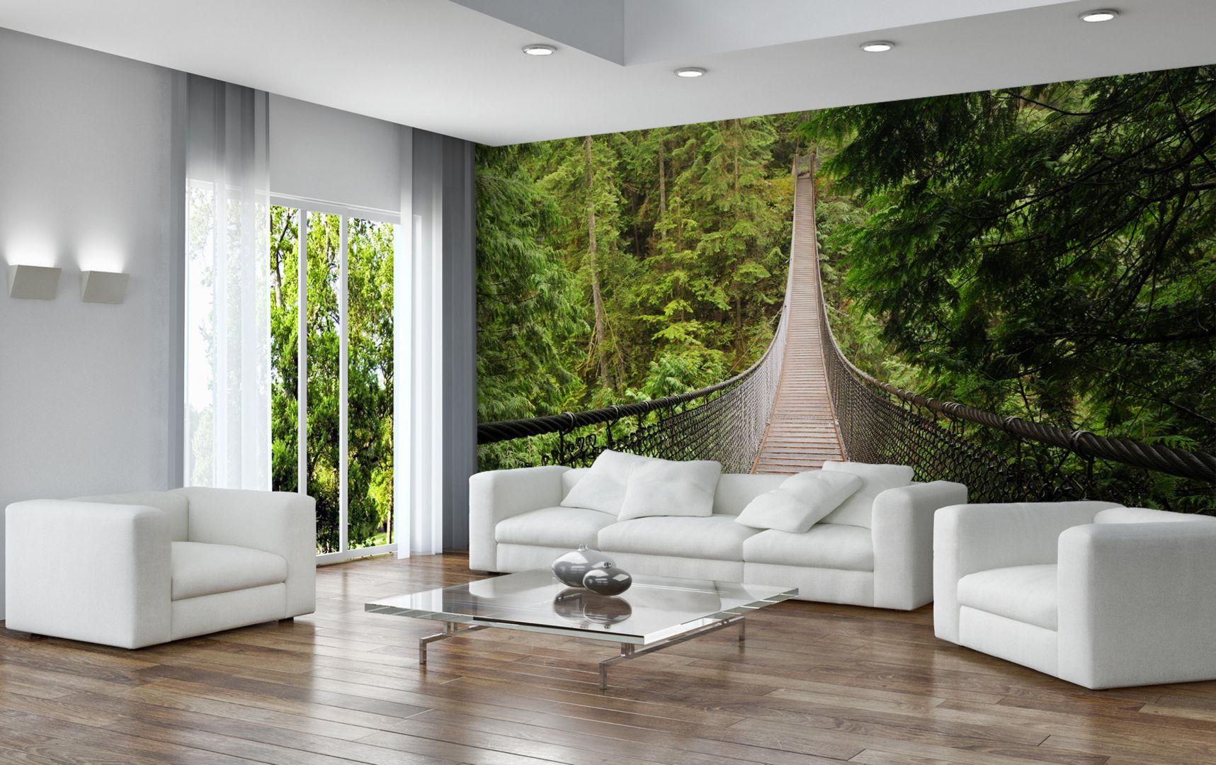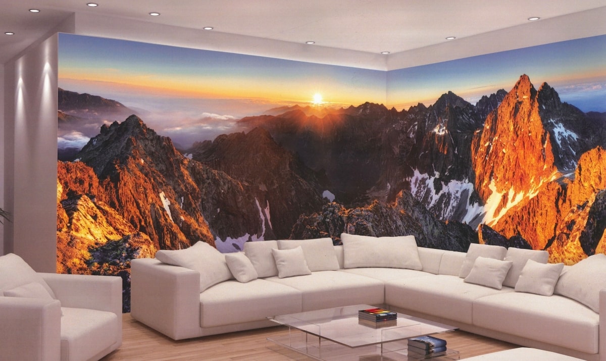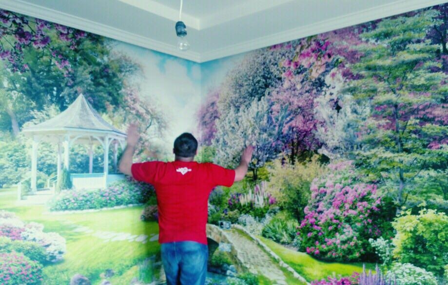 Aplicación de papel tapiz fotográfico en diferentes salas.