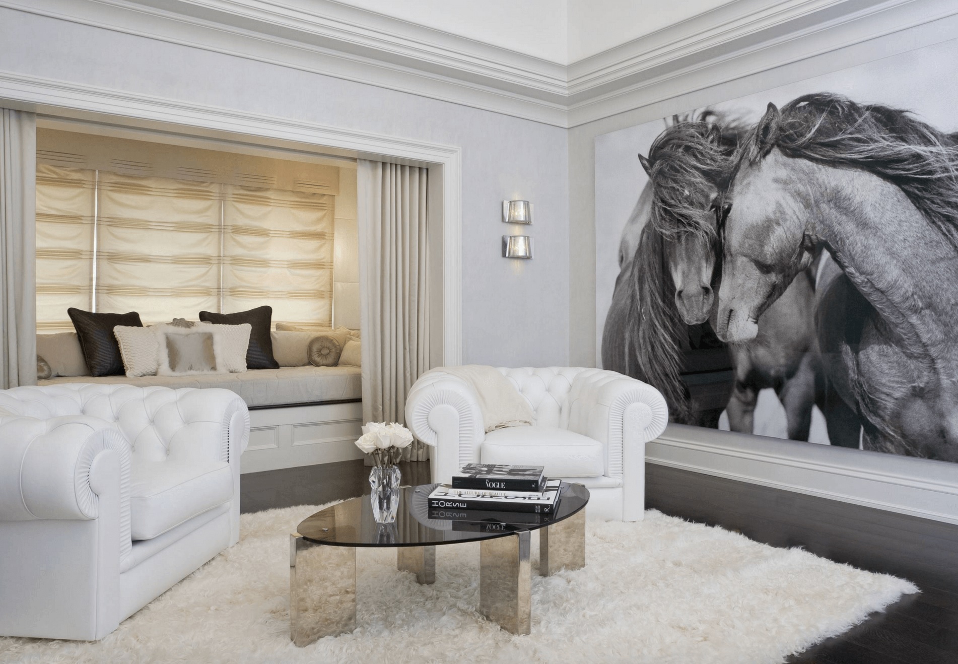 La decoración adecuada de la habitación es imposible sin la armonía entre el papel tapiz fotográfico seleccionado y el resto de la decoración, muebles y accesorios.La imagen no debe ser eliminada del conjunto general.