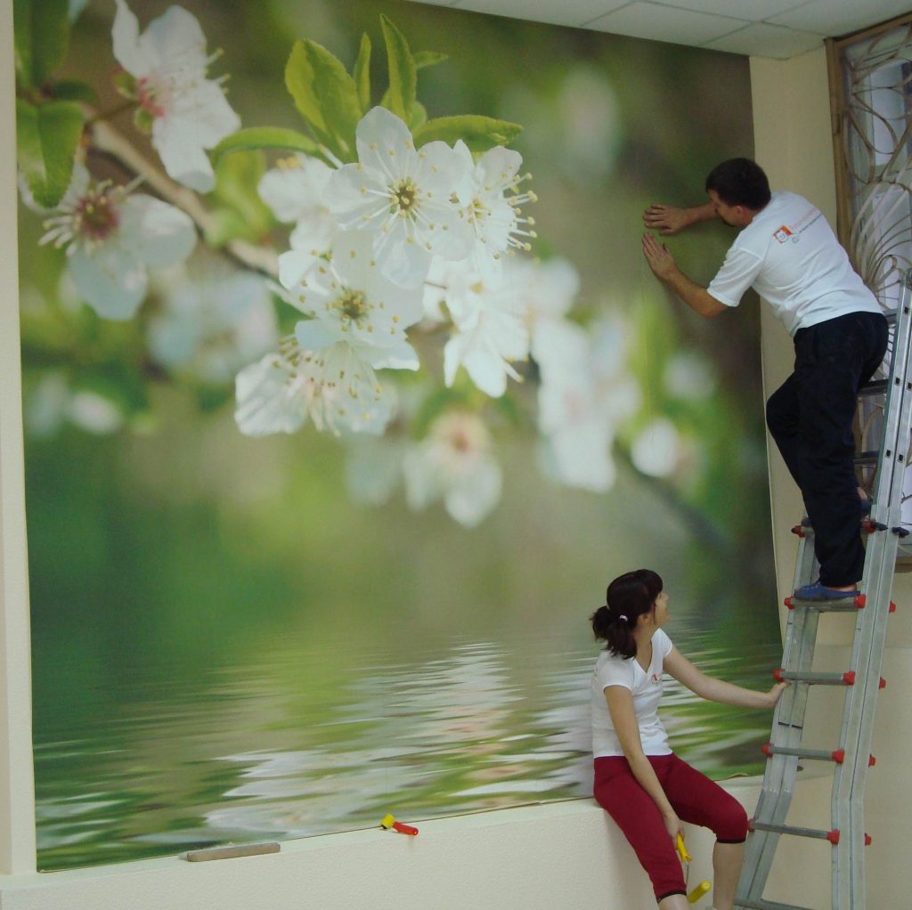 - La necesidad de crear una base perfectamente uniforme. Las imágenes pueden distorsionarse si hay protuberancias e irregularidades debajo del fondo de pantalla. Por lo tanto, la pared debe nivelarse e imprimarse cuidadosamente para una adhesión óptima al lienzo;