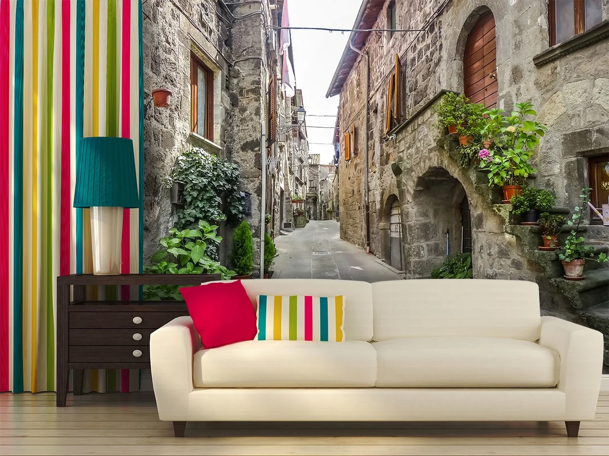 - creando una ventana virtual con una imagen de una metrópoli o una pequeña ciudad europea. Esta es una excelente recepción para habitaciones pequeñas y estrechas, así como para habitaciones sin una ventana real;