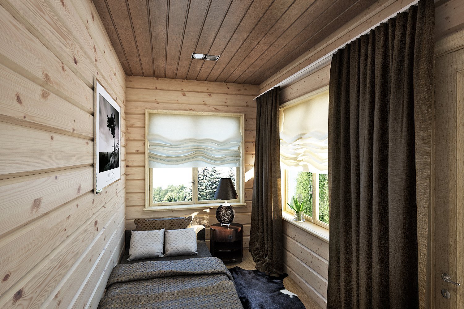 la baratura de este método de decoración (en comparación con otros materiales de madera y, por supuesto, con la construcción real de una casa de troncos);