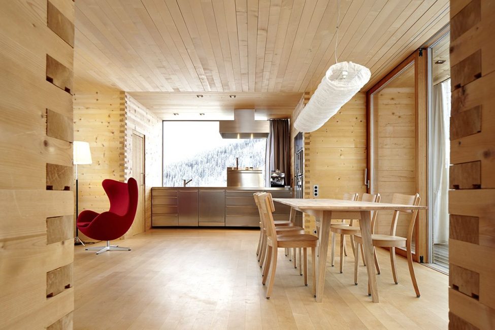 El uso de imitación de madera para la decoración de interiores le permite crear la sensación de vivir en una casa de troncos real, independientemente de si los propietarios viven en un edificio privado o de apartamentos. Los tableros de madera natural crearán un ambiente confortable, un microclima único en todas las habitaciones de la vivienda. Otras ventajas de este acabado incluyen: