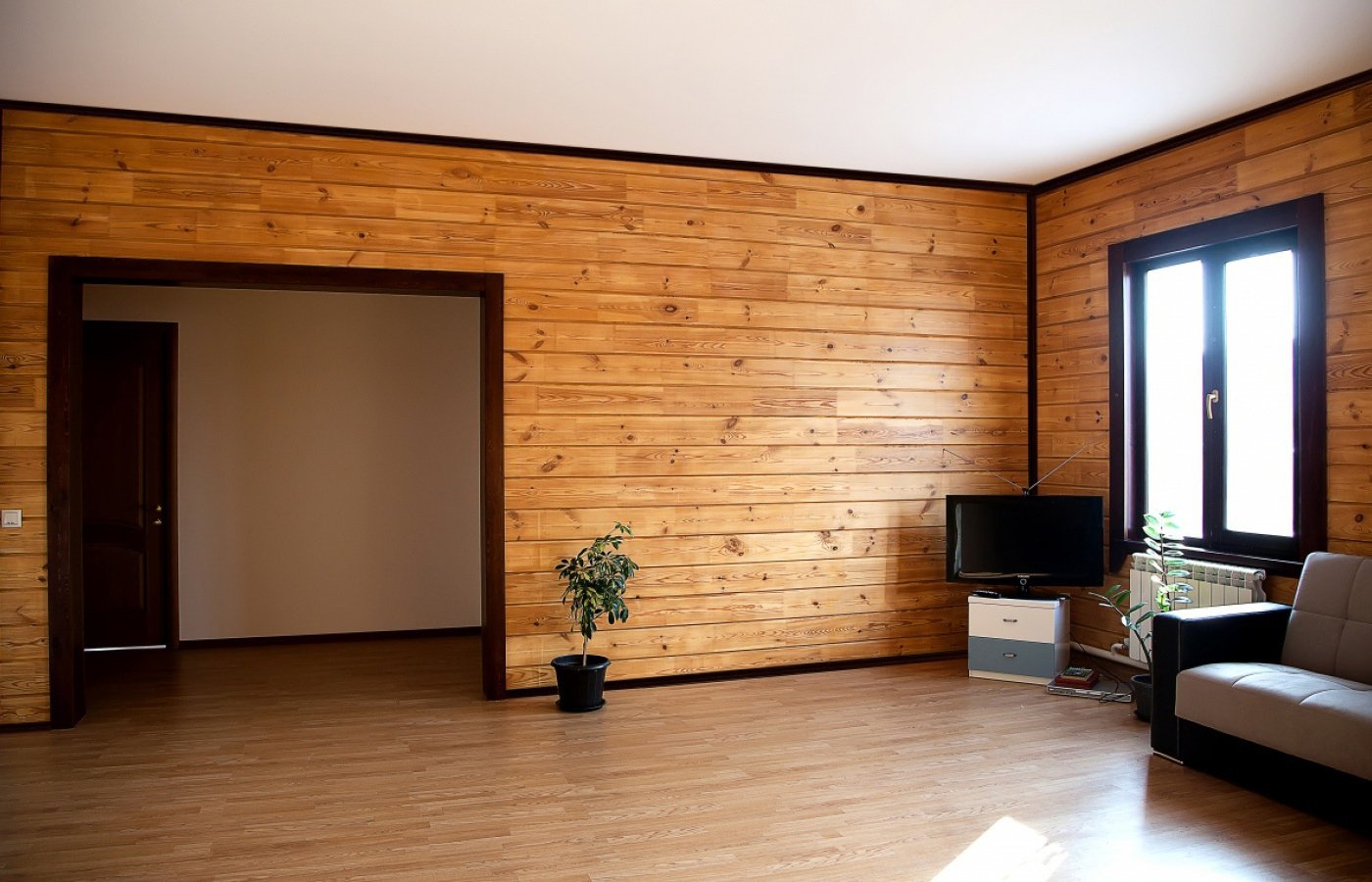 Antes de cubrir completamente la habitación con madera, calcule el área que quedará disponible. Tenga en cuenta que el torneado en 4 paredes + el grosor del haz de imitación reduce ligeramente el espacio libre.