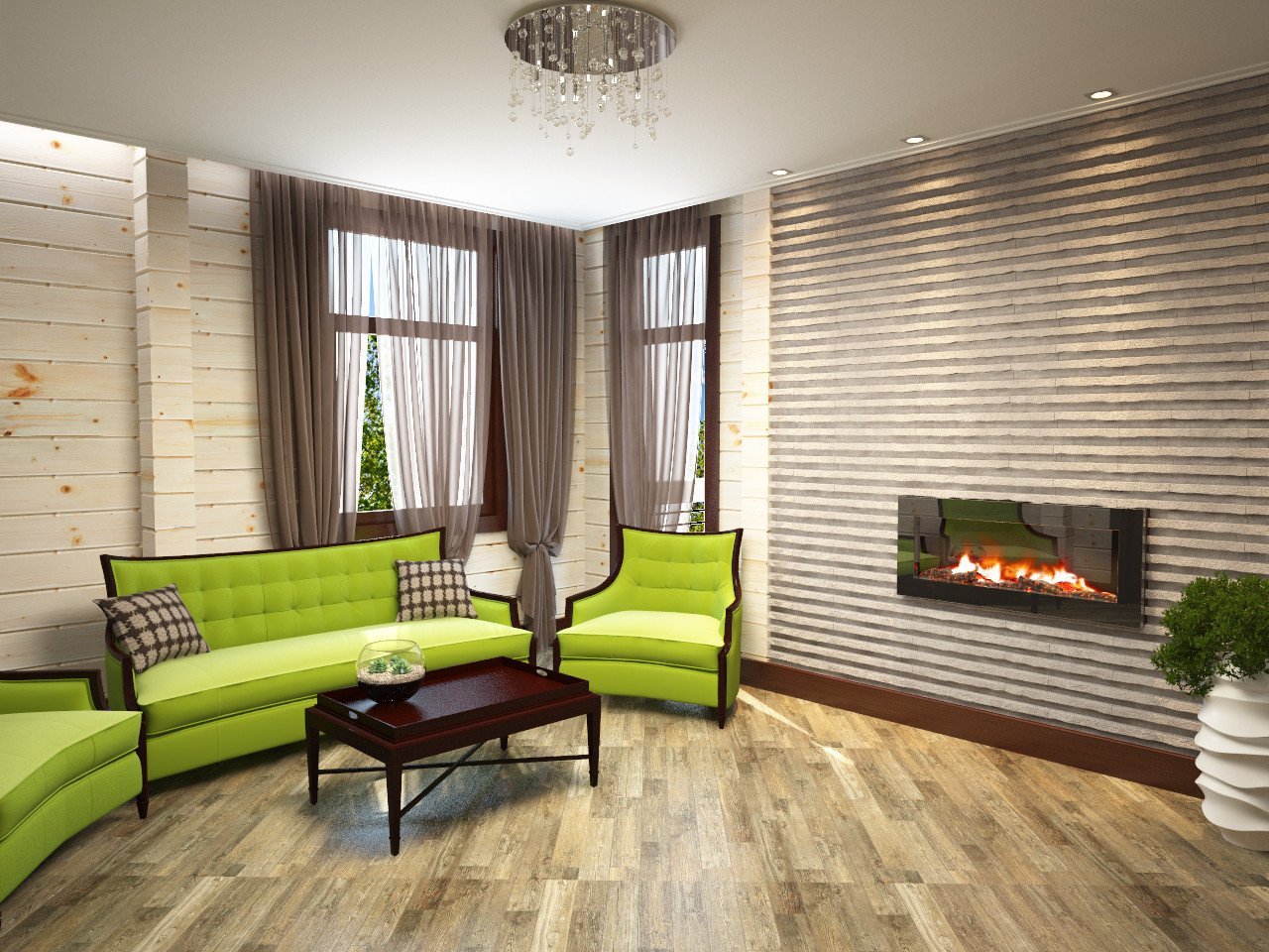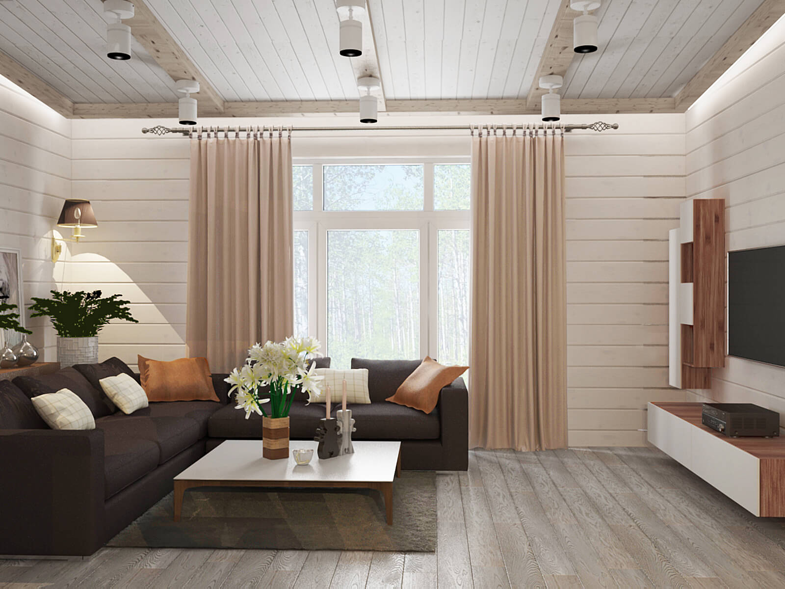 El uso de la imitación del haz para decorar la sala de estar abre muchas opciones para que los propietarios creen un ambiente acogedor y confortable en el pasillo. Las combinaciones de colores más interesantes para decorar el salón con madera incluyen: