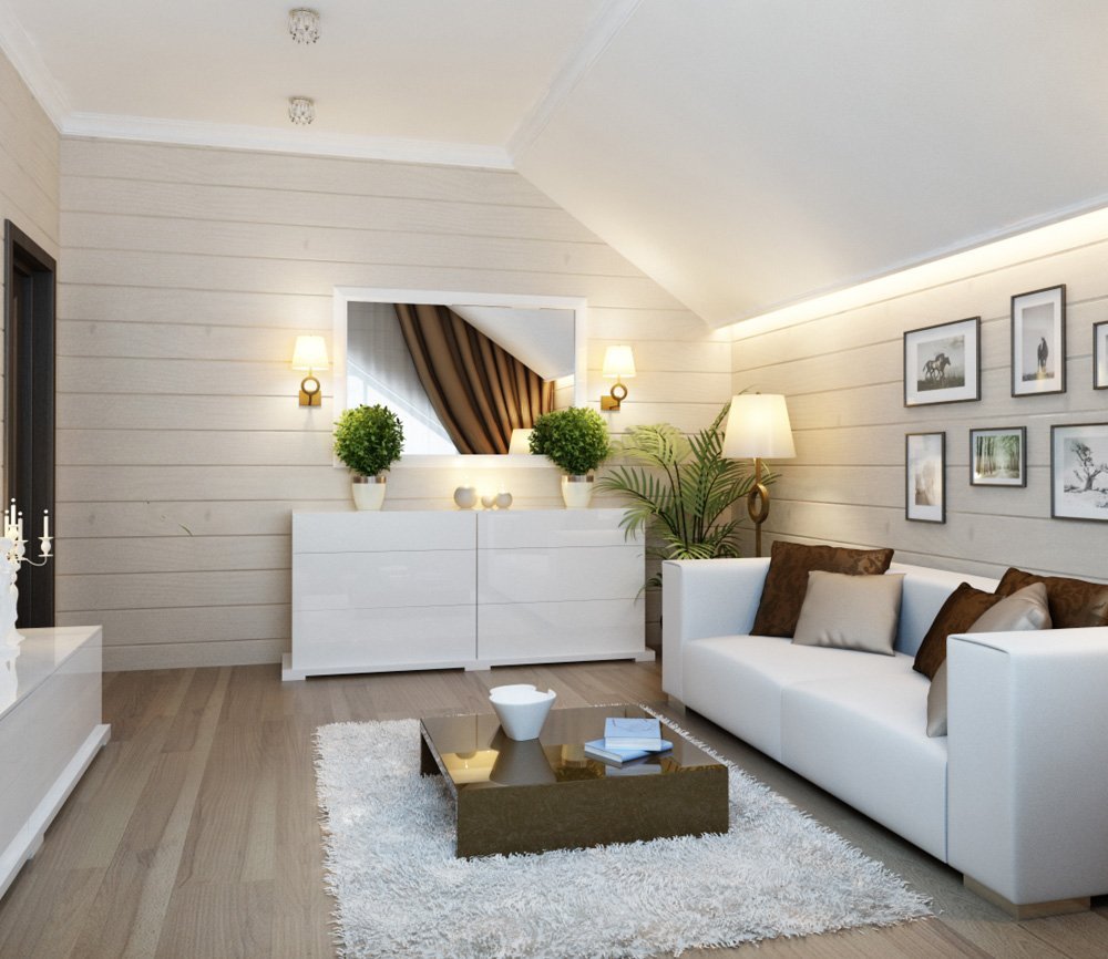 Usando la imitación de un bar, es posible actualizar fácilmente una casa de verano ordinaria o una casa de ladrillo, y un apartamento moderno. Tal acabado puede elegirse entre la madera sin procesar y prepararse independientemente para su uso o comprarse completamente preparado: tratado con un antiséptico, pintado. Al seleccionar materiales, debe calcular con precisión la cantidad requerida de productos. Los propietarios pueden realizar la instalación de la imitación del haz con sus propias manos, ya que dicho trabajo lleva un tiempo mínimo y no requiere habilidades especiales del artista. Pero para que la alteración continua de las habitaciones sea llamativa y realmente hermosa, debe seleccionar cuidadosamente el estilo en el que se realizará la reparación. Los acabados de madera son ideales para implementar tendencias rústicas simples, así como para crear interiores originales ultramodernos.