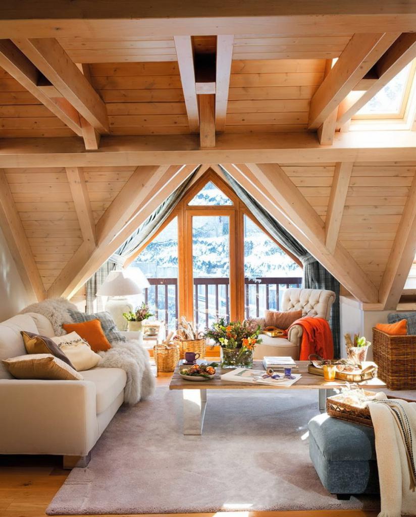 La opción ideal para usar la imitación del haz para la decoración de la habitación es elegir uno de los siguientes estilos: