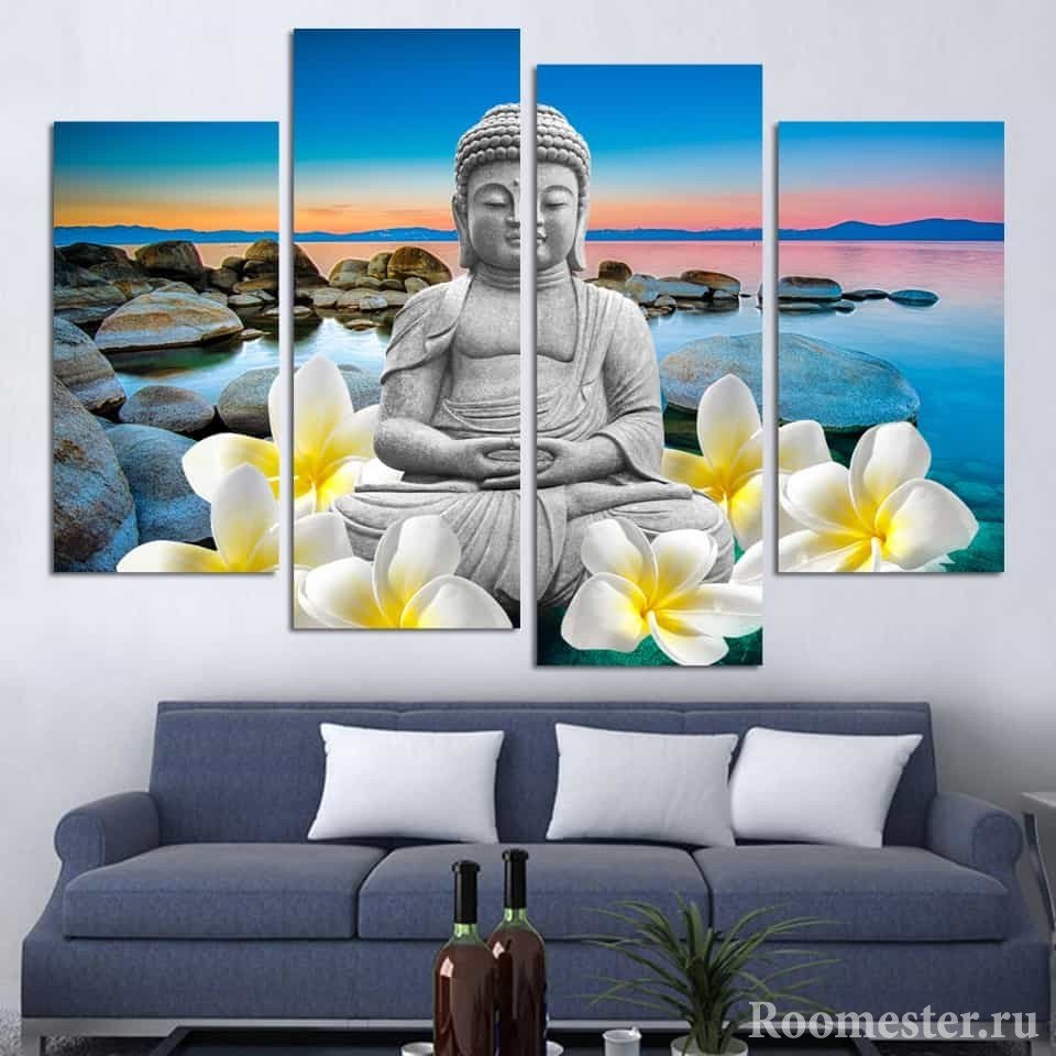 El dormitorio está destinado a la relajación, por lo que las imágenes en los lienzos deben crear una atmósfera de armonía y calma acogedora. Es mejor confiar en tus sentimientos e intentar traducirlos en pintura. ¿Te gusta la naturaleza? Elige lienzos con una imagen de paisaje, te gusta mirar el agua; los flujos de agua ayudarán a llenar la habitación con energía positiva. Sin embargo, las pinturas con un enfoque en el agua deben elegirse con cuidado. Corrientes tranquilas, los ríos atraen la prosperidad monetaria. Pero es mejor no elegir exuberantes cascadas e hidromasajes para el dormitorio. La calma y la sensación de comodidad en el dormitorio crearán lienzos con la imagen de una superficie lisa y tranquila y un cielo despejado y despejado. El mar embravecido con un barco que se hunde en el contexto de nubes pesadas y sombrías provocará un efecto negativo y provocará una sensación de ansiedad. Será imposible relajarse en un ambiente familiar después de un día de trabajo.