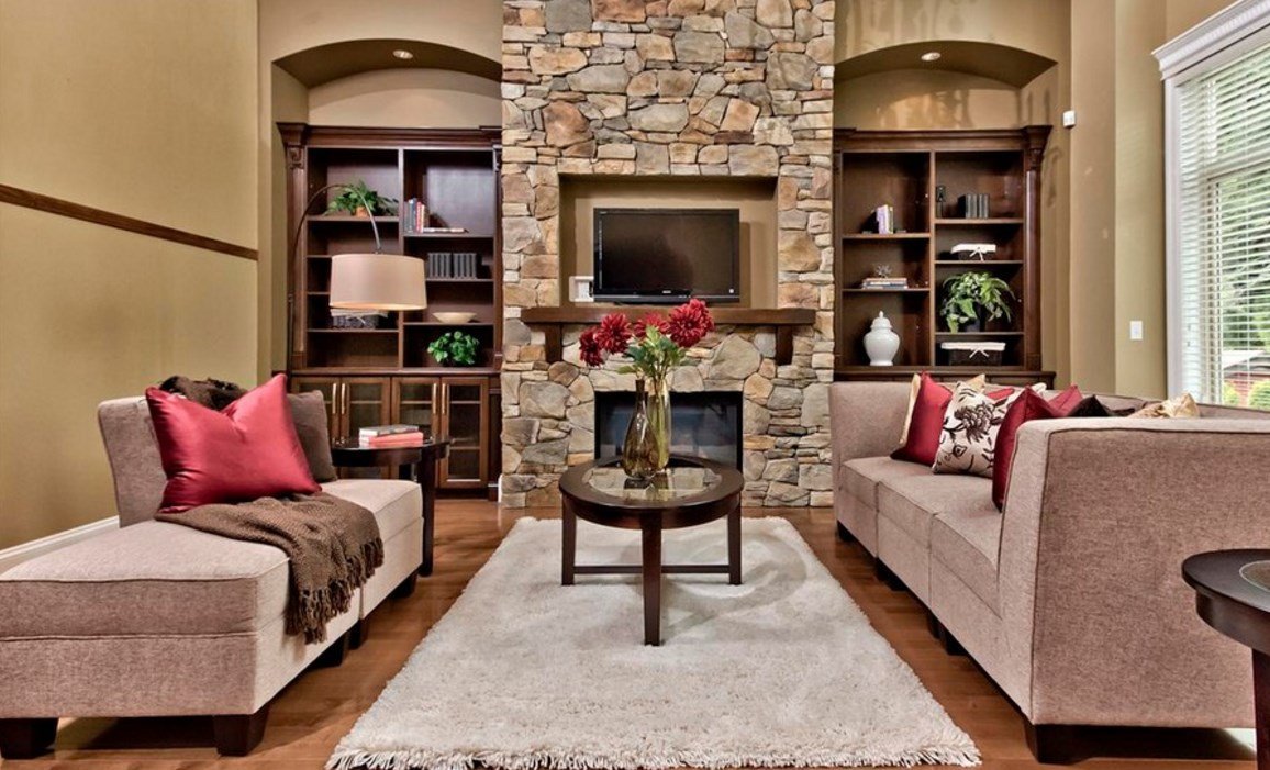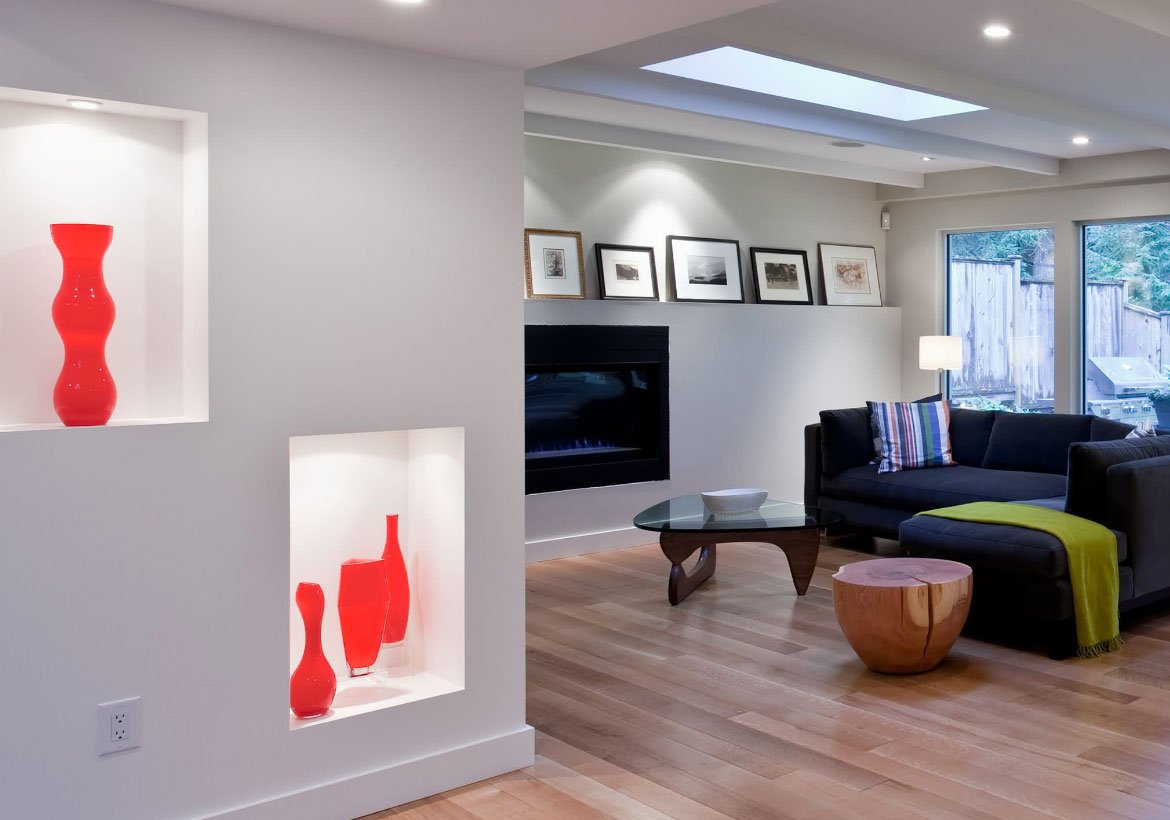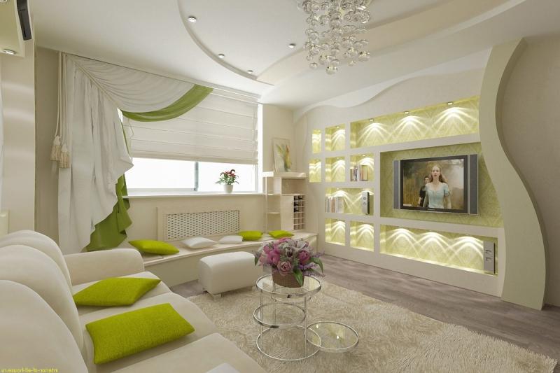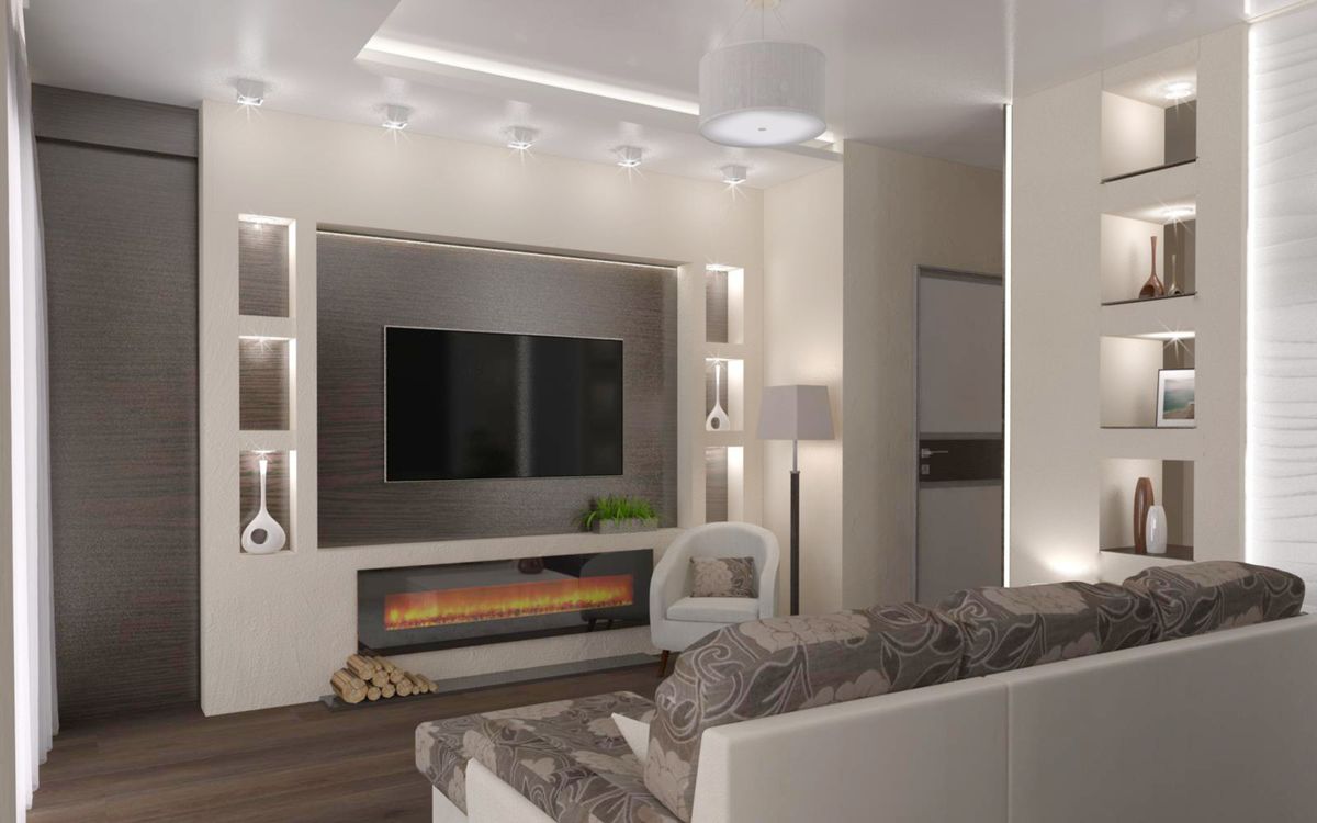 El diseñador puede aconsejar hacer un nicho en la sala de estar en forma de un lugar para leña o un gabinete para muchos libros y revistas. Pero puede crear un receso para cualquier cosa, por ejemplo, para botellas de vino.