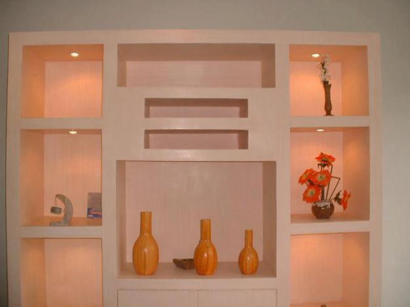 Los huecos para colocar la decoración tienen el mismo color que todo el esquema de color de la pared. A veces se usan tonos de colores consonantes. Pero todas las transiciones de color aquí deberían ser suaves.