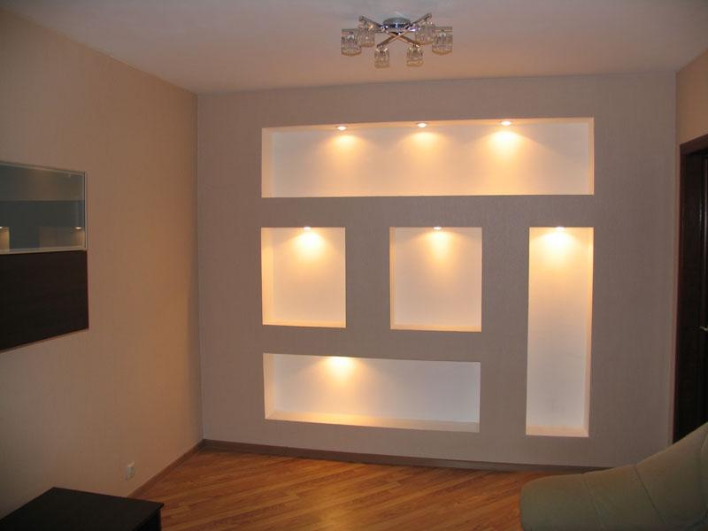 La iluminación de nicho de bricolaje es mejor pensar de antemano. Dado que en el proceso, los focos son difíciles de instalar.