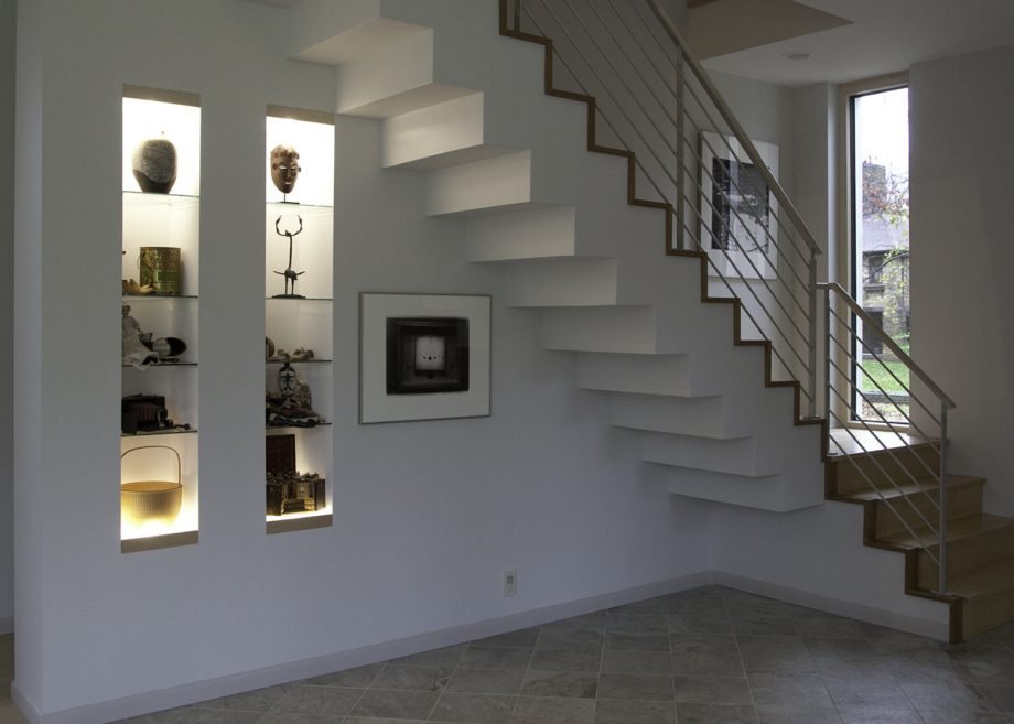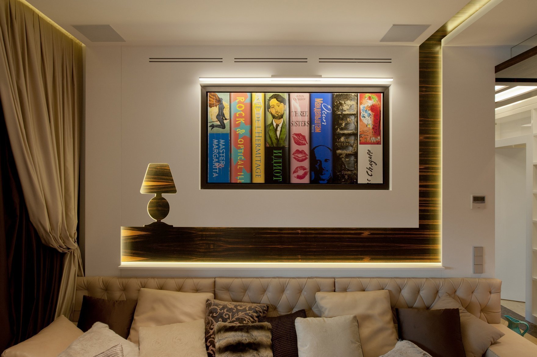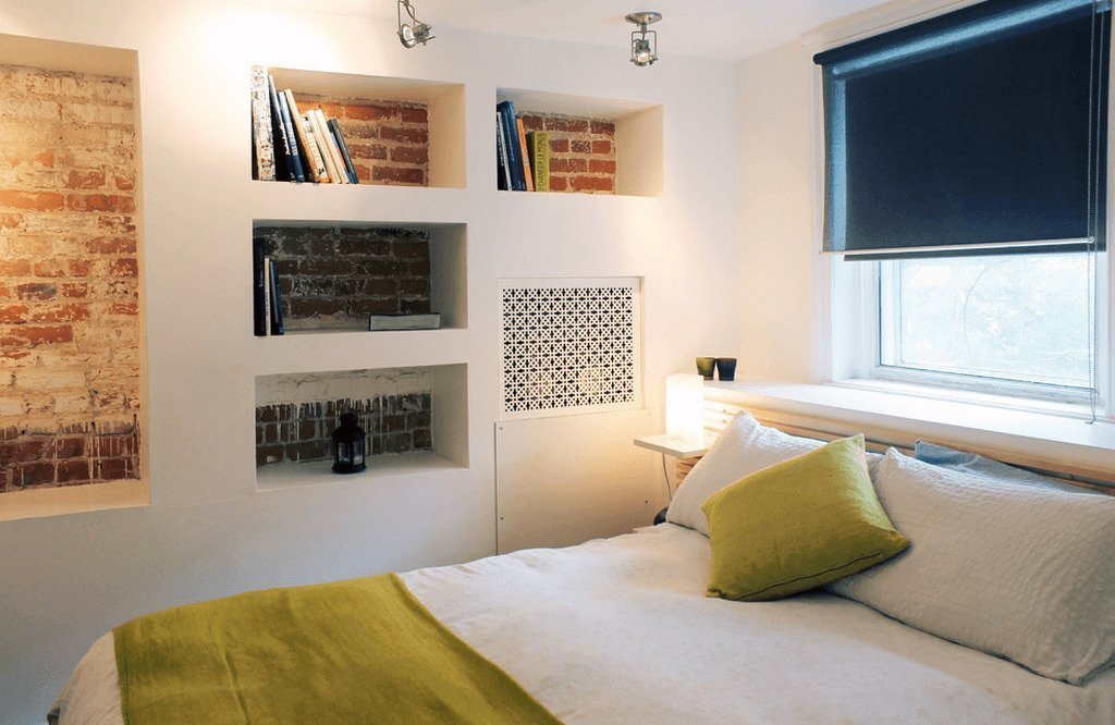 Cualquier hueco horizontal puede agregar un poco más de comodidad y confort al interior general de la habitación. Los recovecos en la pared se ven un poco misteriosos y no triviales, dando al espacio alrededor de una ligera luz de rompecabezas.