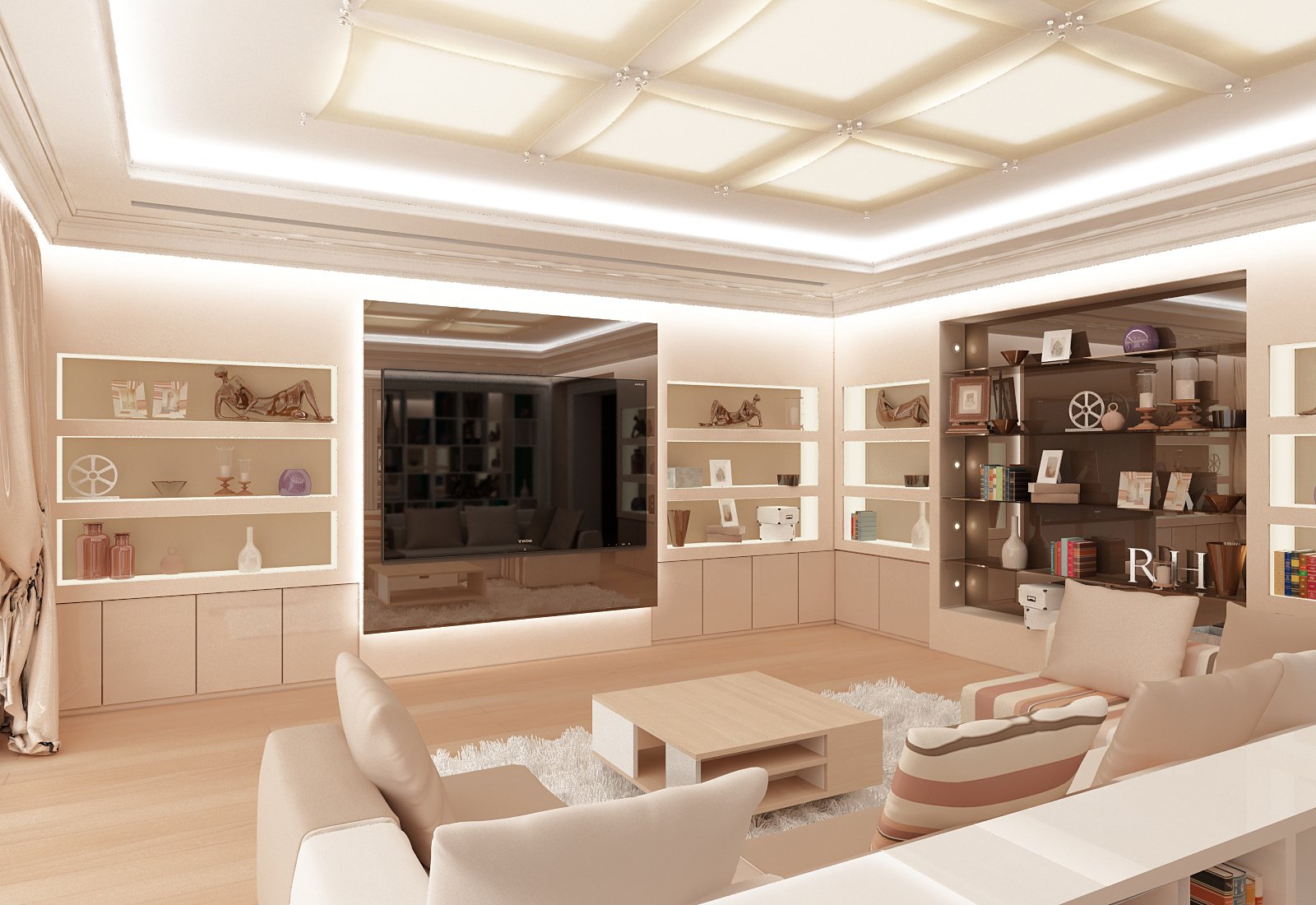 En las habitaciones pequeñas, los huecos no son demasiado profundos, pero los espacios grandes con huecos significativos se ven armoniosos.
