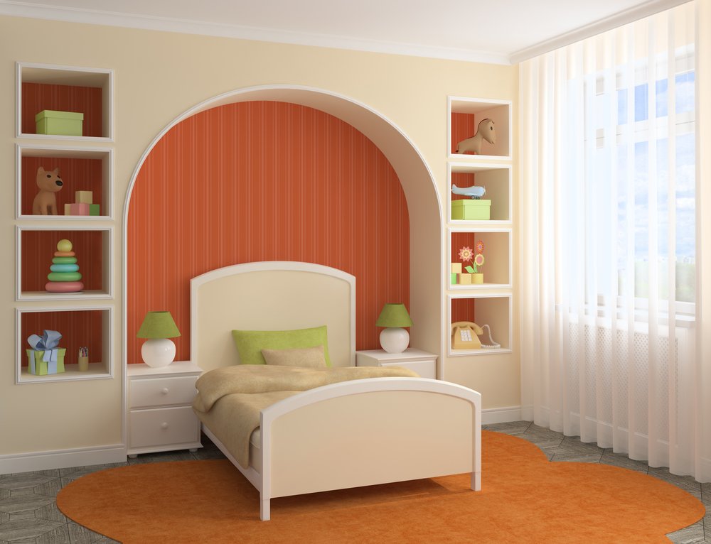 El diseño brillante del nicho en la guardería parece más apropiado que en otra habitación.